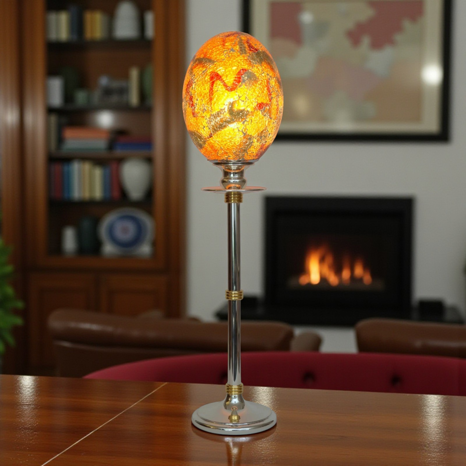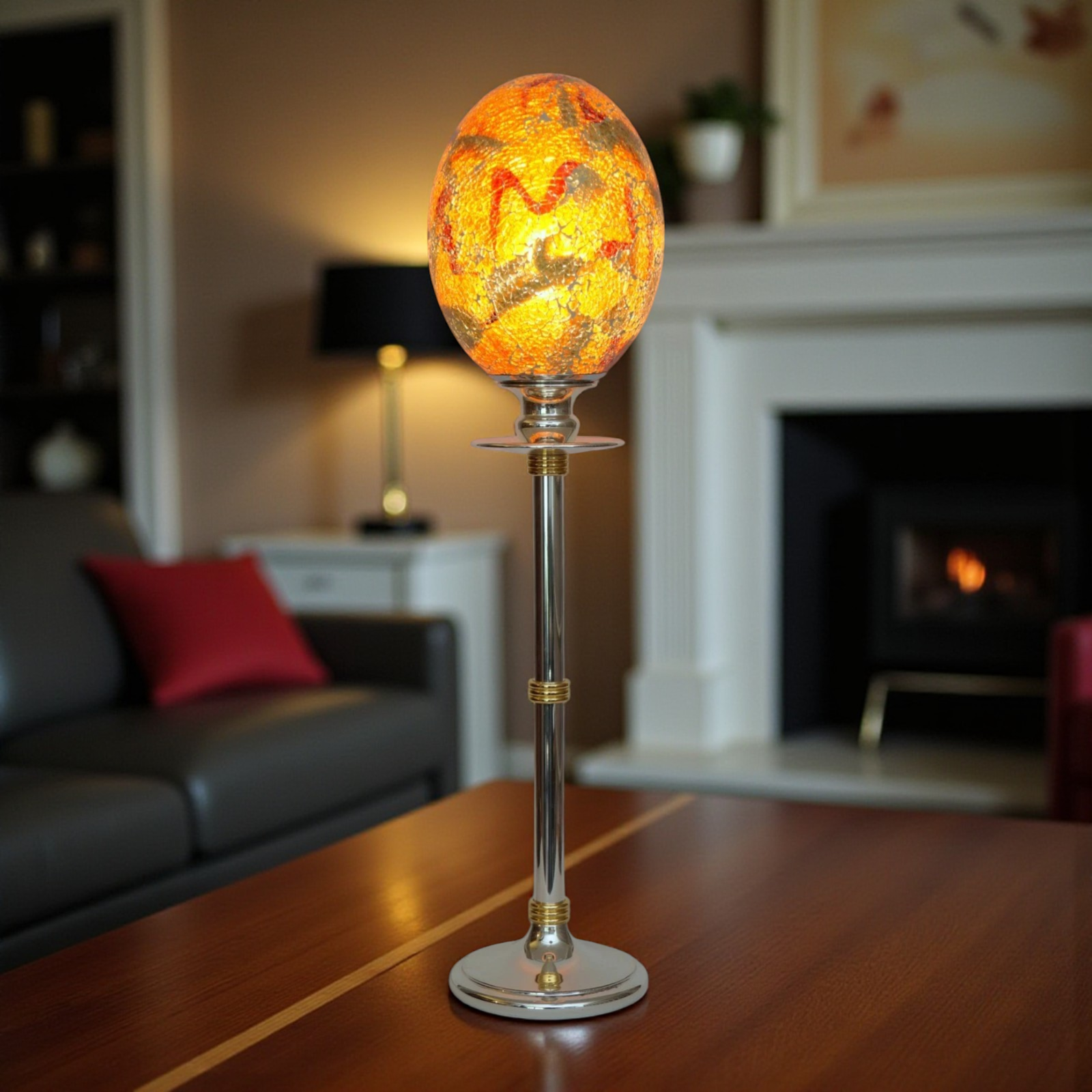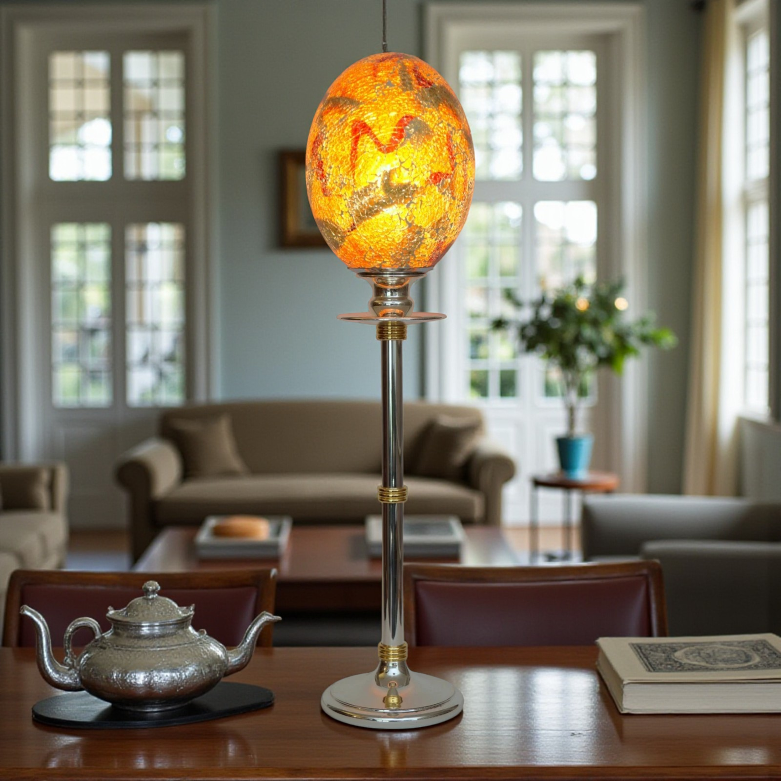 Art Deco Lamp Brass Table Lamp " Golden Egg Two " Chrome Light