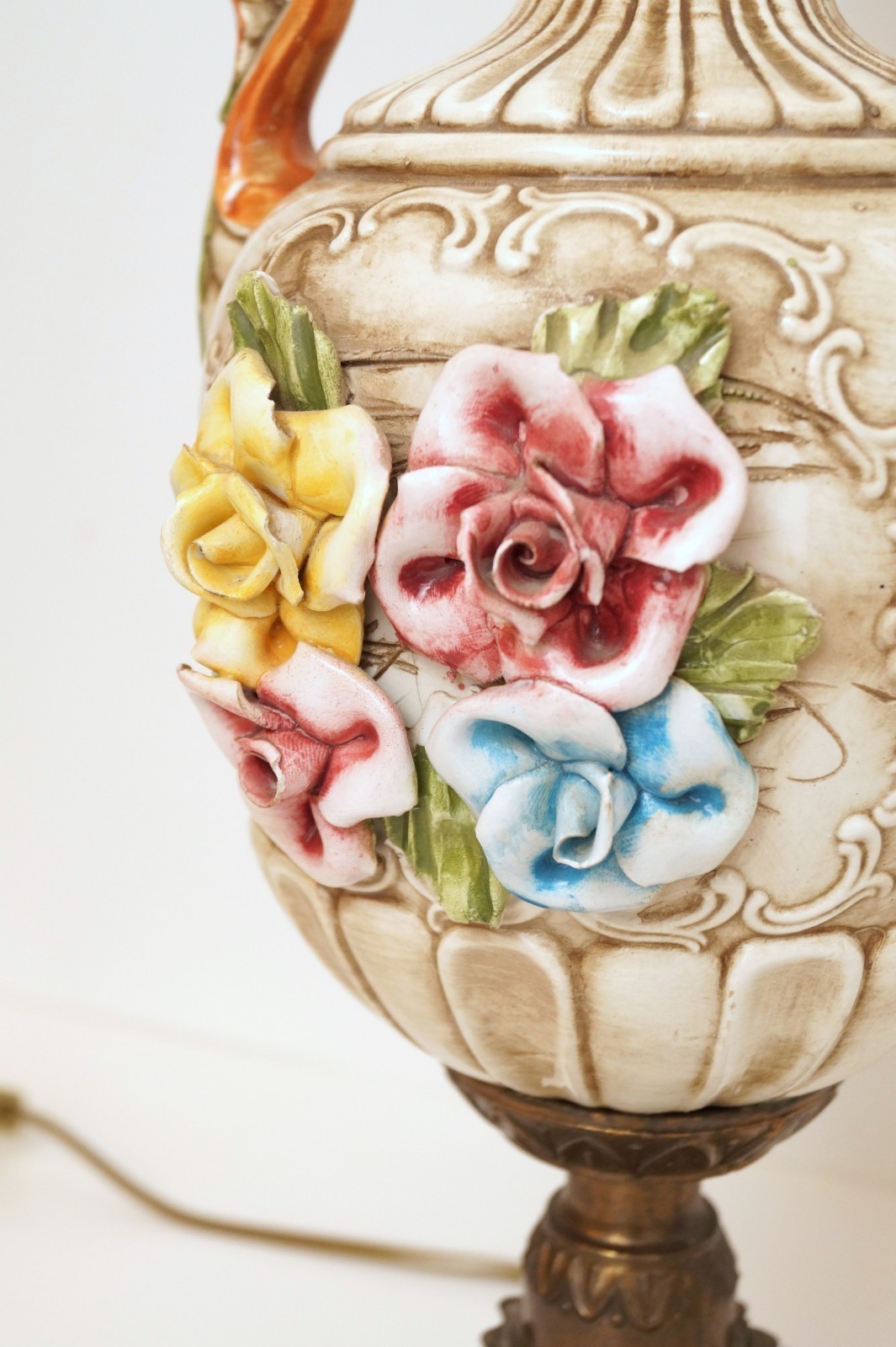 Dutch Art Nouveau Salon Table Lamp Ceramic Roses 1960s