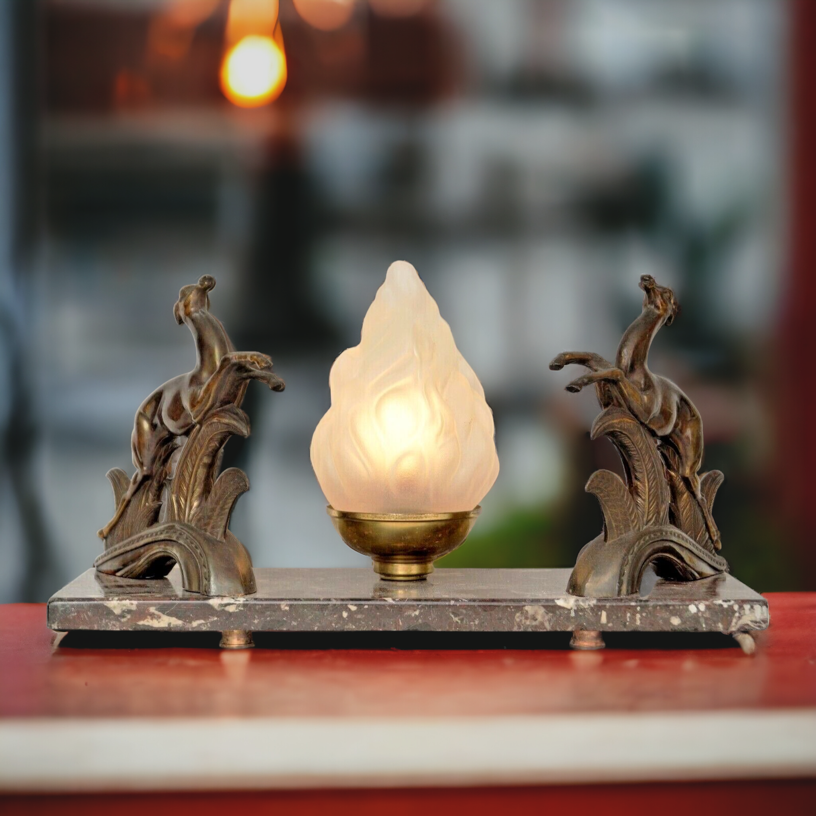Type Deco Sculptures Lamp Table Lamp " Golden Deers " Deer 1930 Light