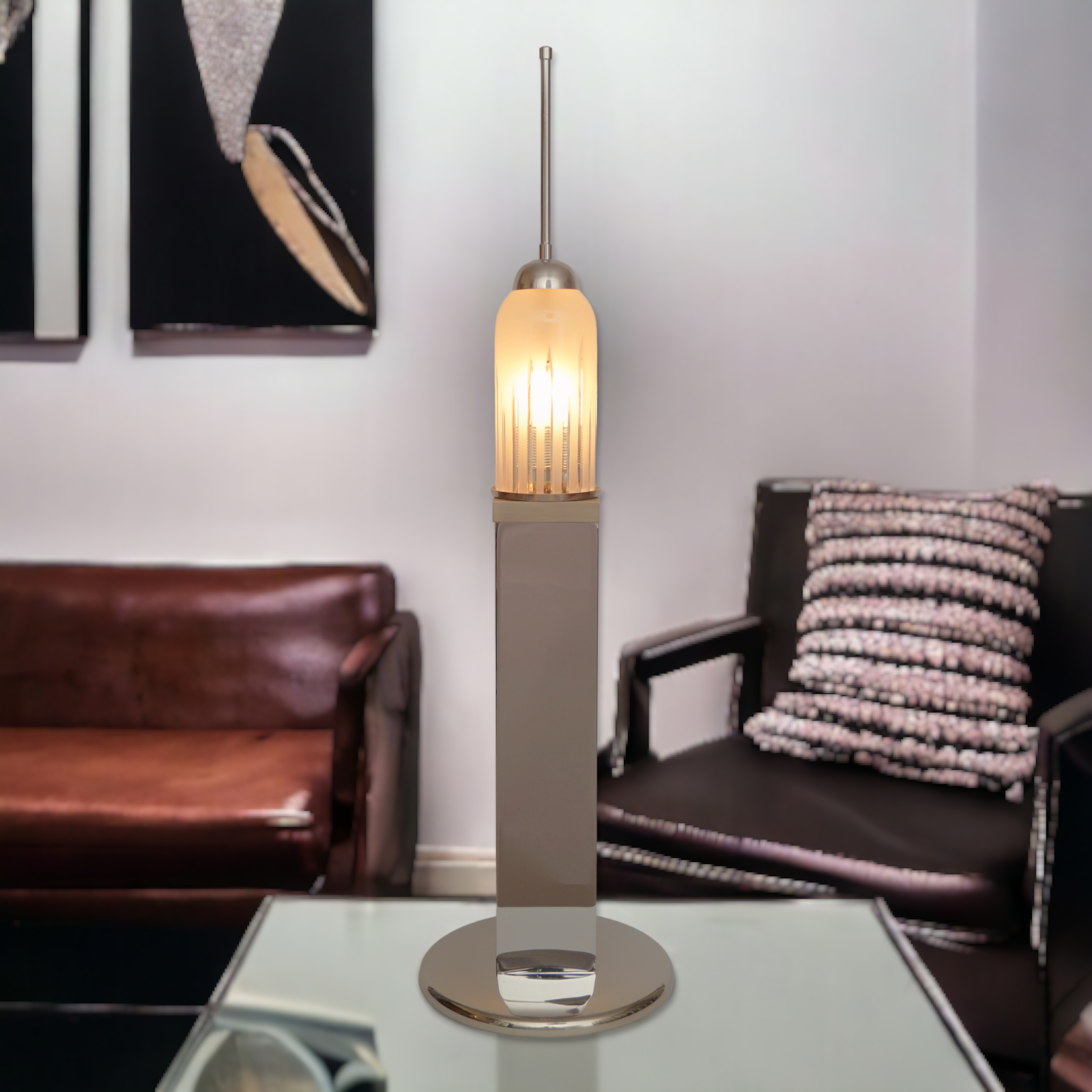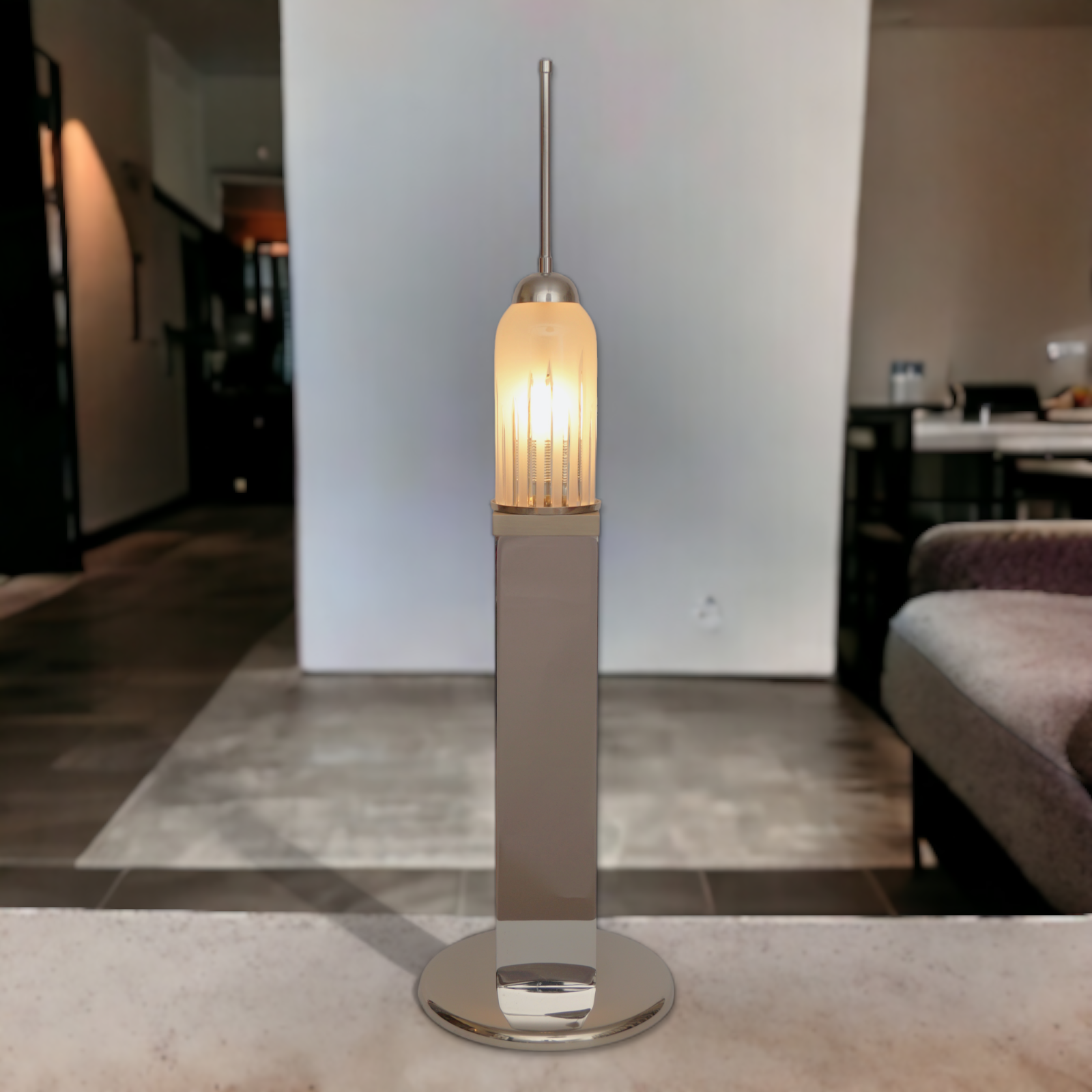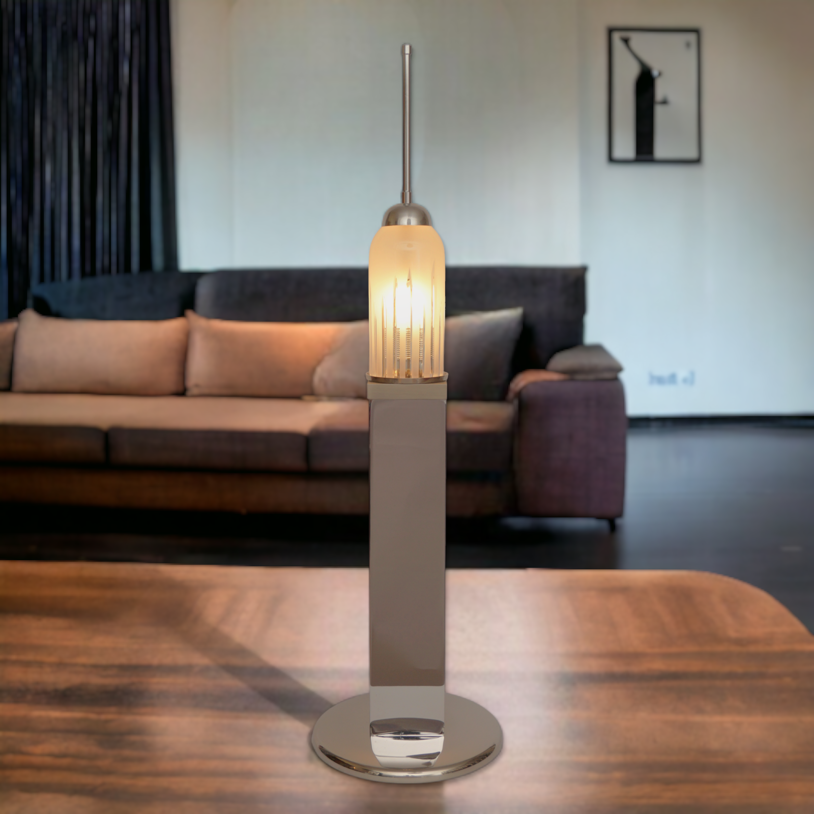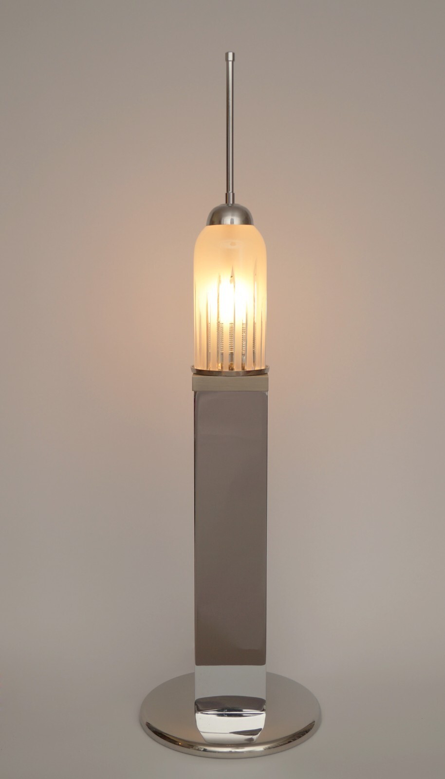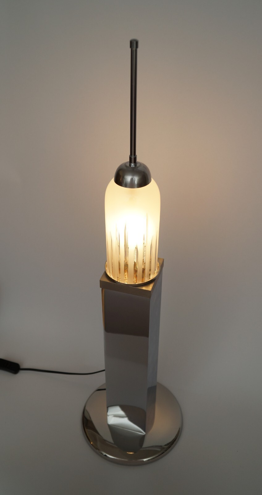Large Design Table Lamp "EMPIRE STATE" Unique Chrome 70s Table Light