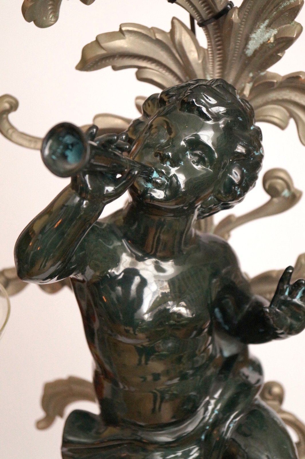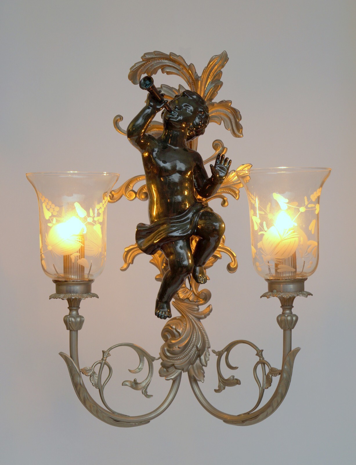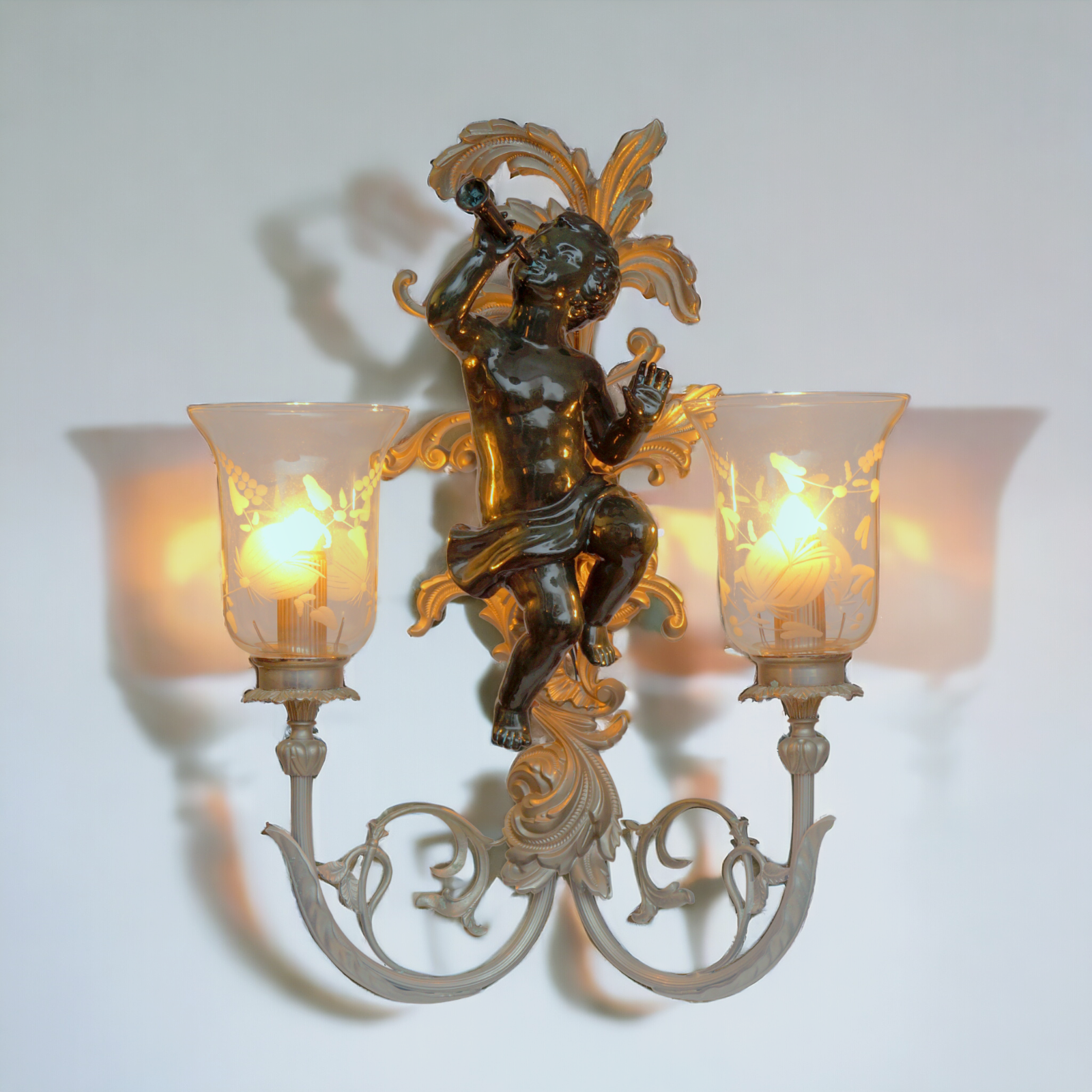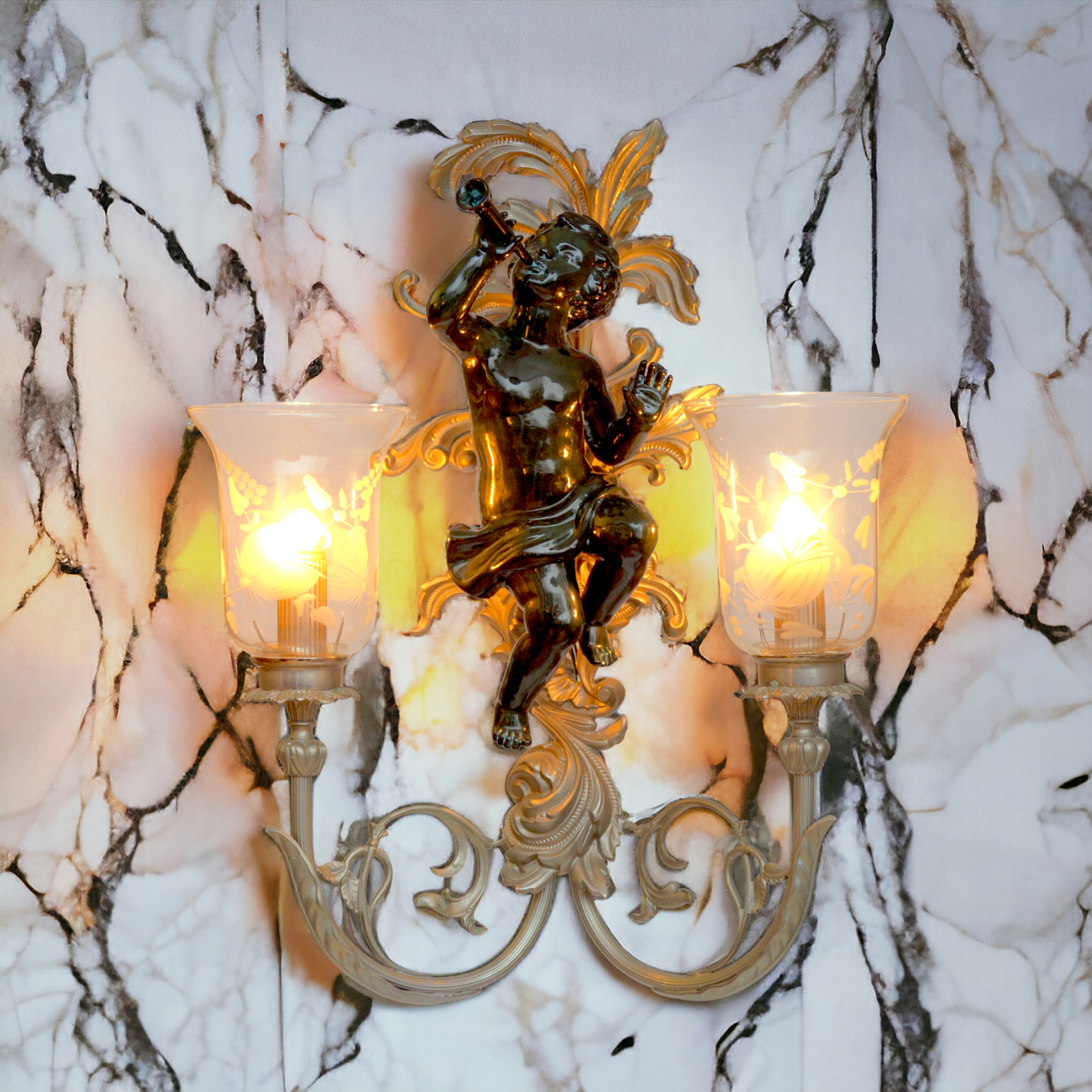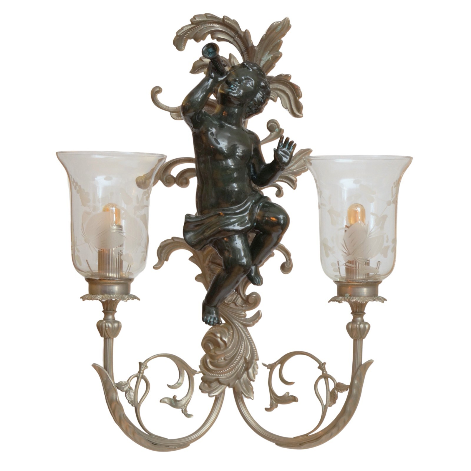 Extravagant Art Nouveau Wall Light "GREEN CHERUB" Putto Wall Lamp Angel