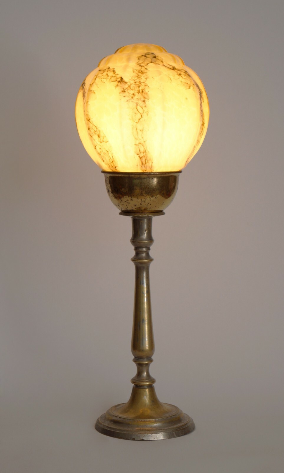 Original Art Deco Brass Lamp " La Lune " Table 1930