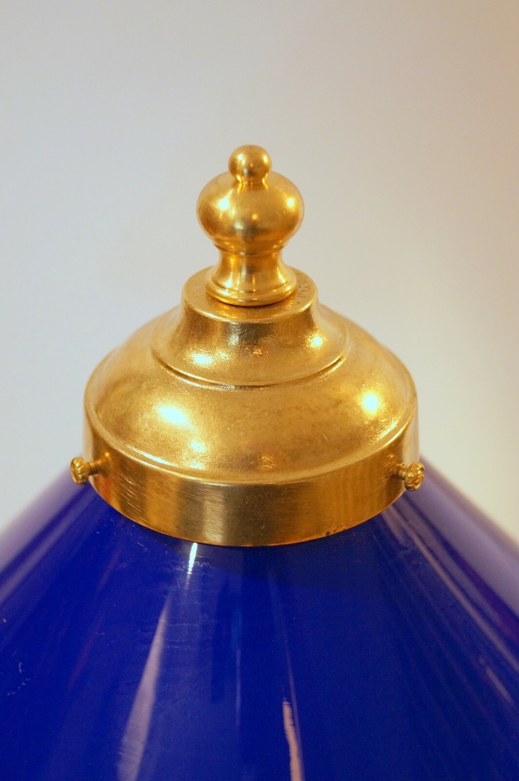 Important: We recommend only using LED bulbs (filament bulbs!) for each of our lights. In addition to the up to 12 times higher efficiency, the very low heat generation of an LED bulb ensures the lifespan of the electrics and the valuable original glass of your light. LED bulbs available everywhere or here . Please also note: This is a used and/or antique item that, despite being refurbished and cleaned, shows clear signs of age and wear. If you are looking for a "new" and high-gloss hardware store style light, you have definitely come to the wrong place! Thank you for your understanding. Our lamps are all unique and stand out pleasantly from the always same look of the famous "brass lamps from the capital", where each lamp is ultimately available in thousands. You can only get indi