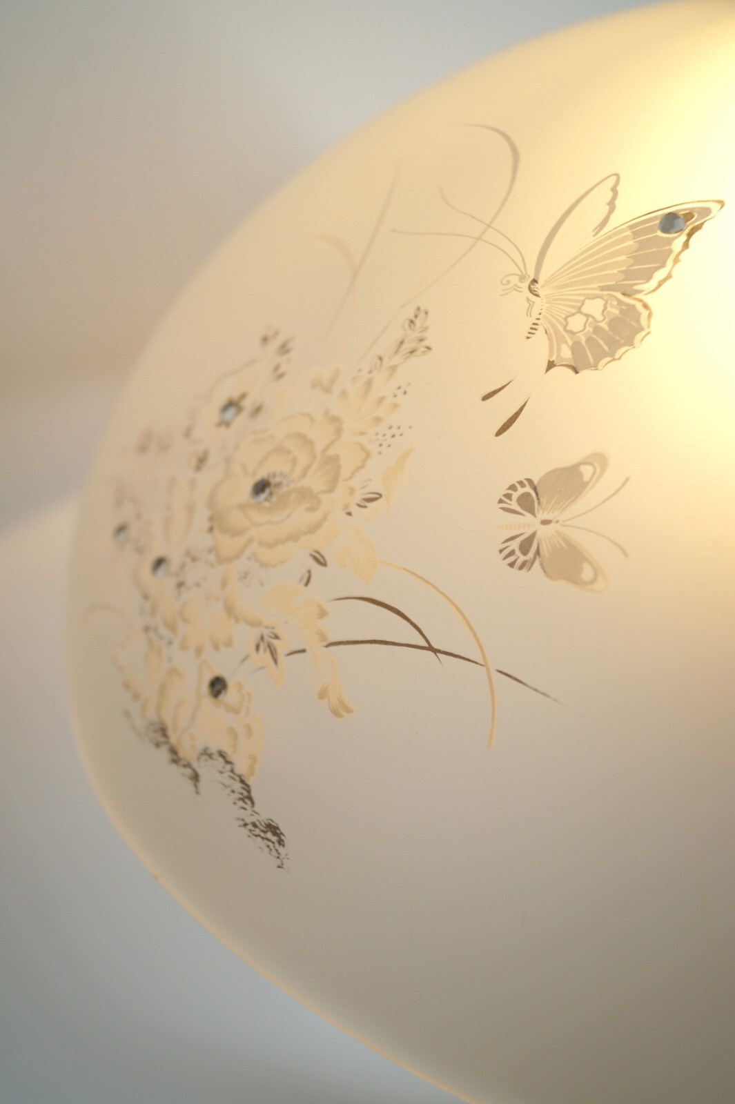Caustique Matt. Verre de lampe moderne, decoration de fleurs et strass attaches.