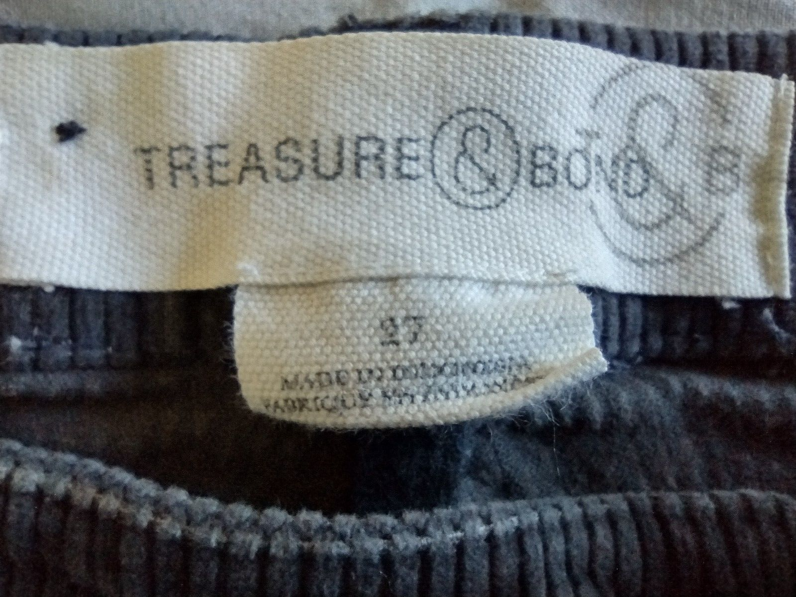 Treasure & Bond Women Gray Corduroy Pant Jean Size 27 EUC