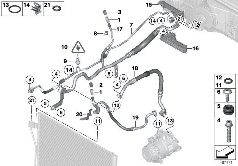2011-2016 bmw 550i 750i f10 n63 air condition ac pressure line hose pipe 911995