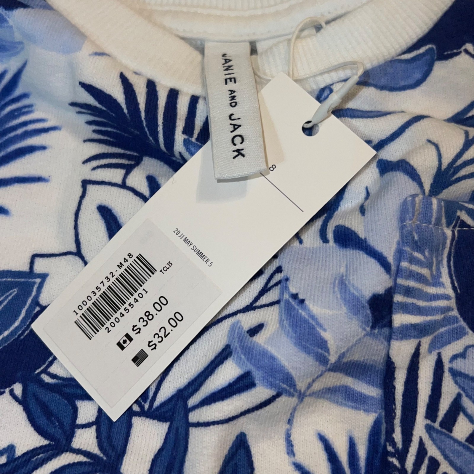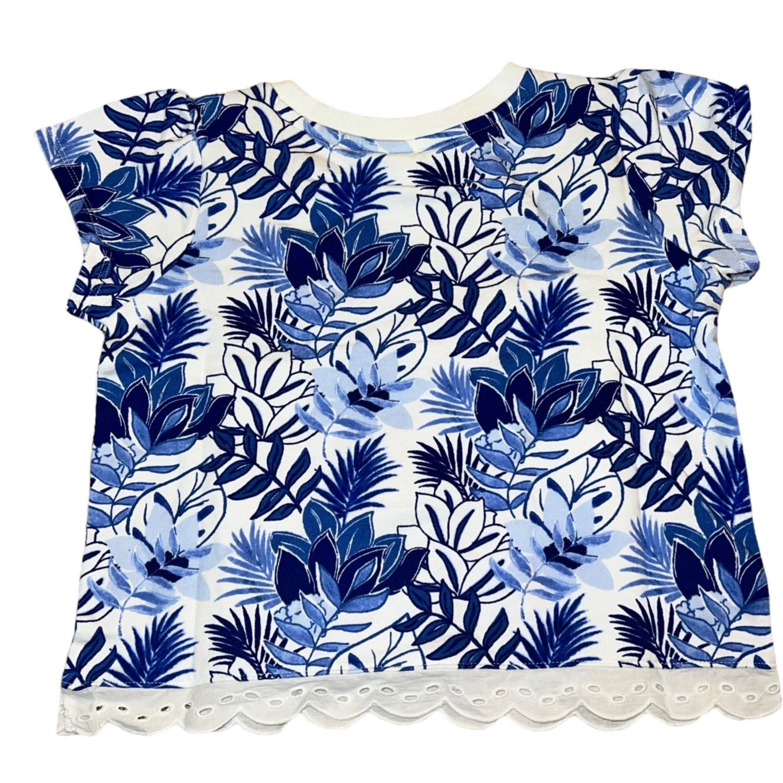 Janie and Jack Blue Cropped Top Blue Leaf Multi-Print Sz 8 NWT