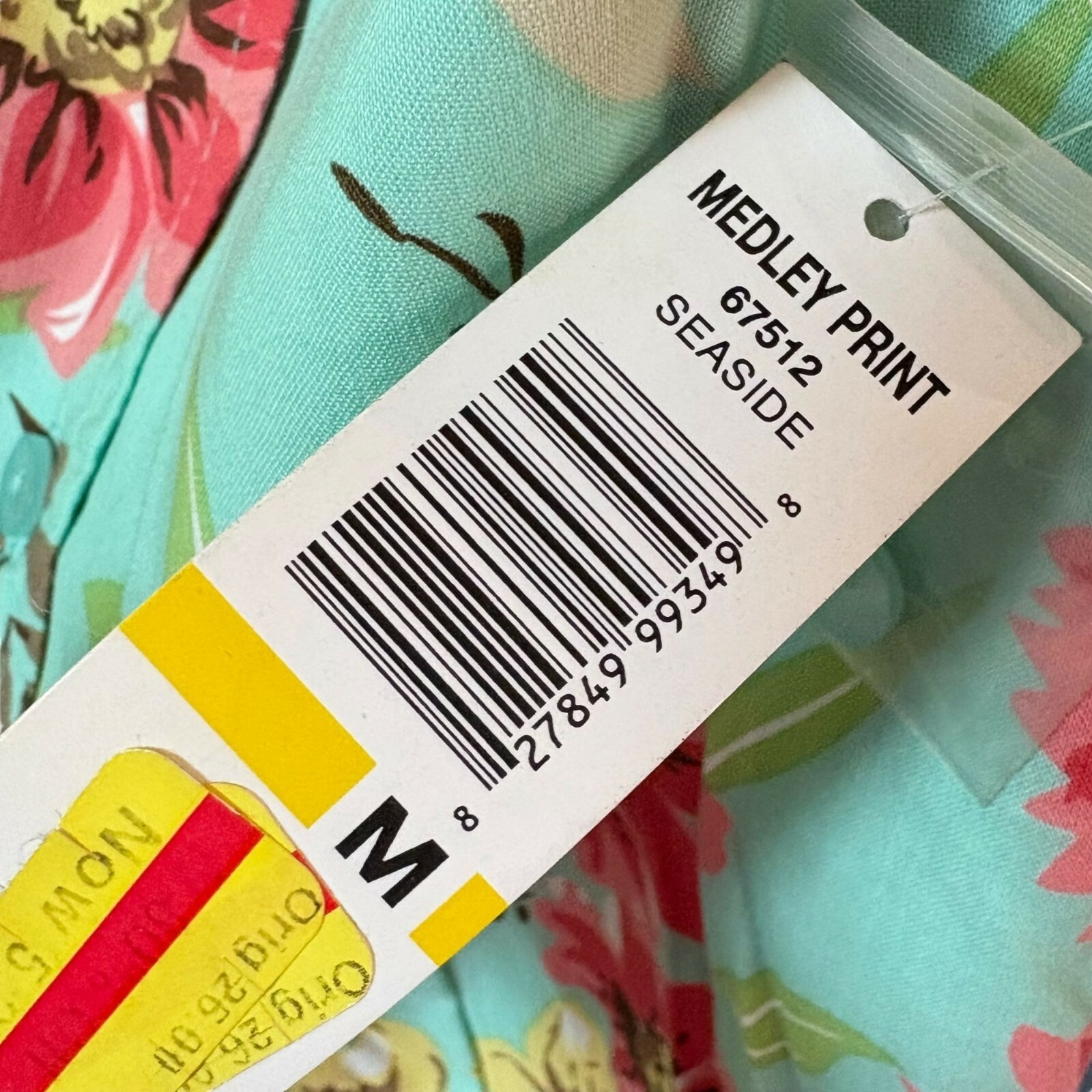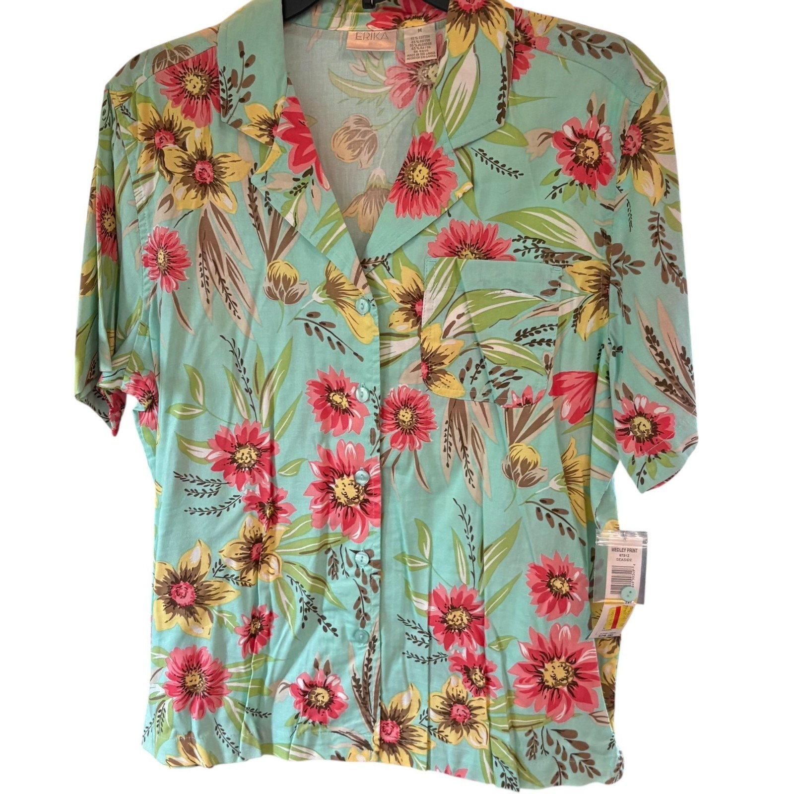 Erika Womens Floral Medley Print Short Sleeve Button-Up Blouse M Cotton & Rayon