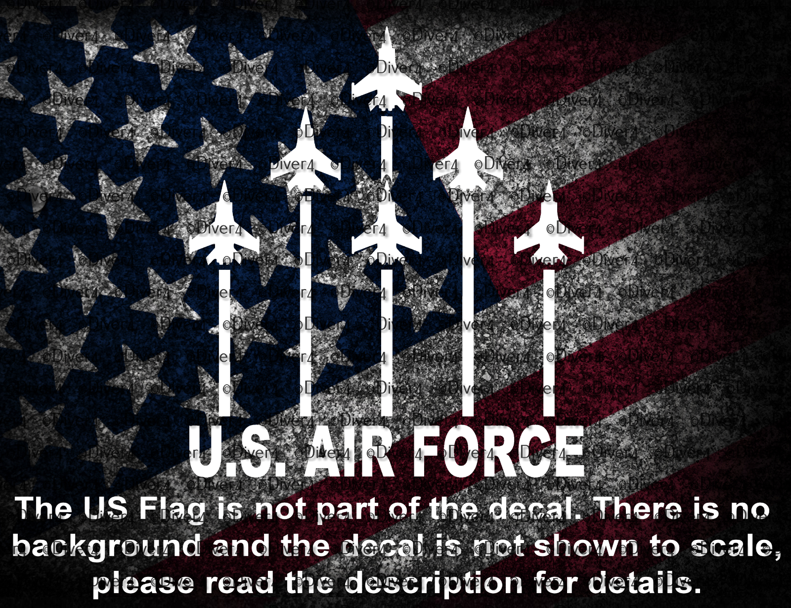 This is a custom cut vinyl decal US Air Force Jets In Formation (Thunderbirds).