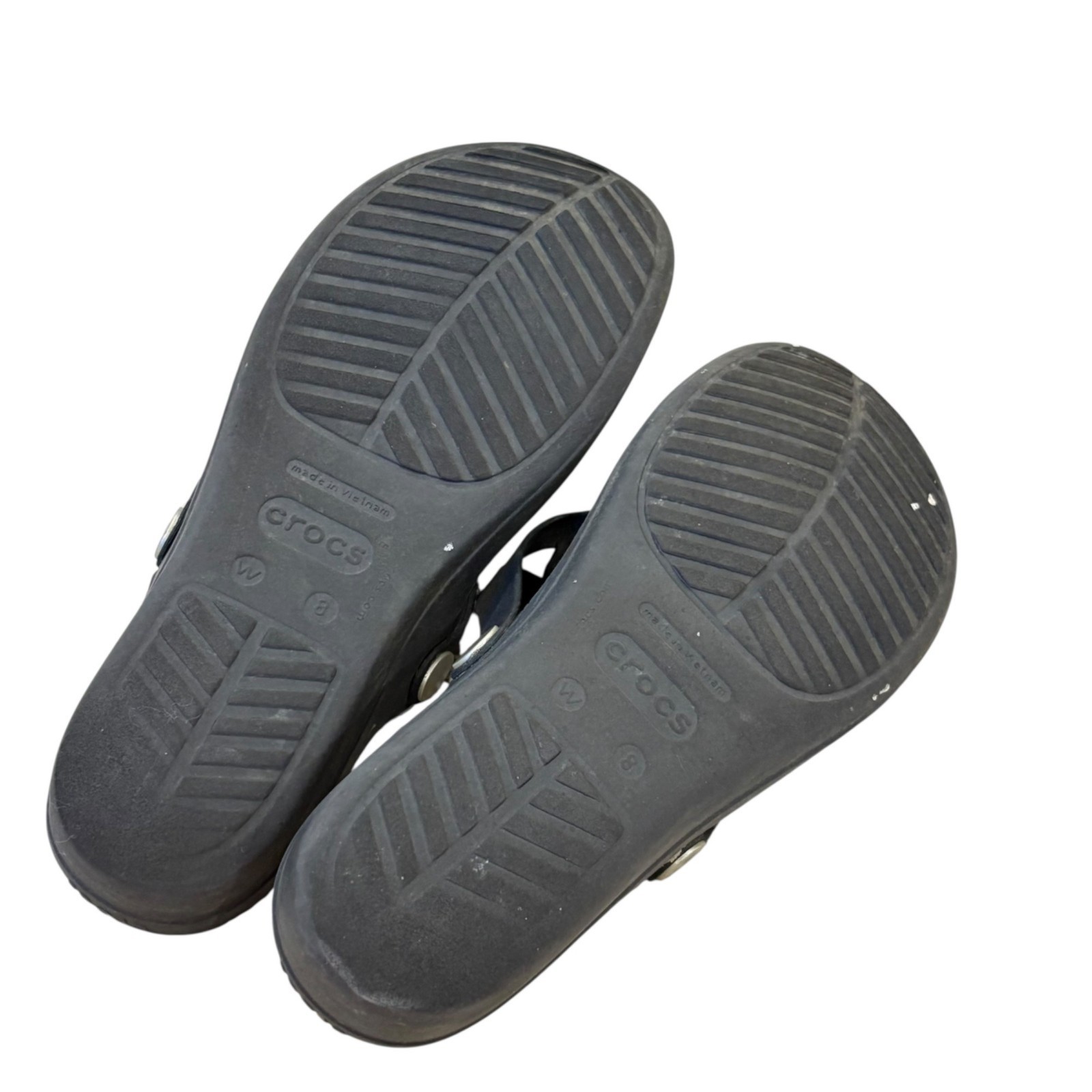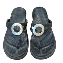 Crocs Womens Black Sanrah Slip-On Silver Circle Ring Sandals Flip Flops Size 8