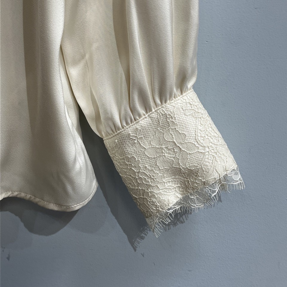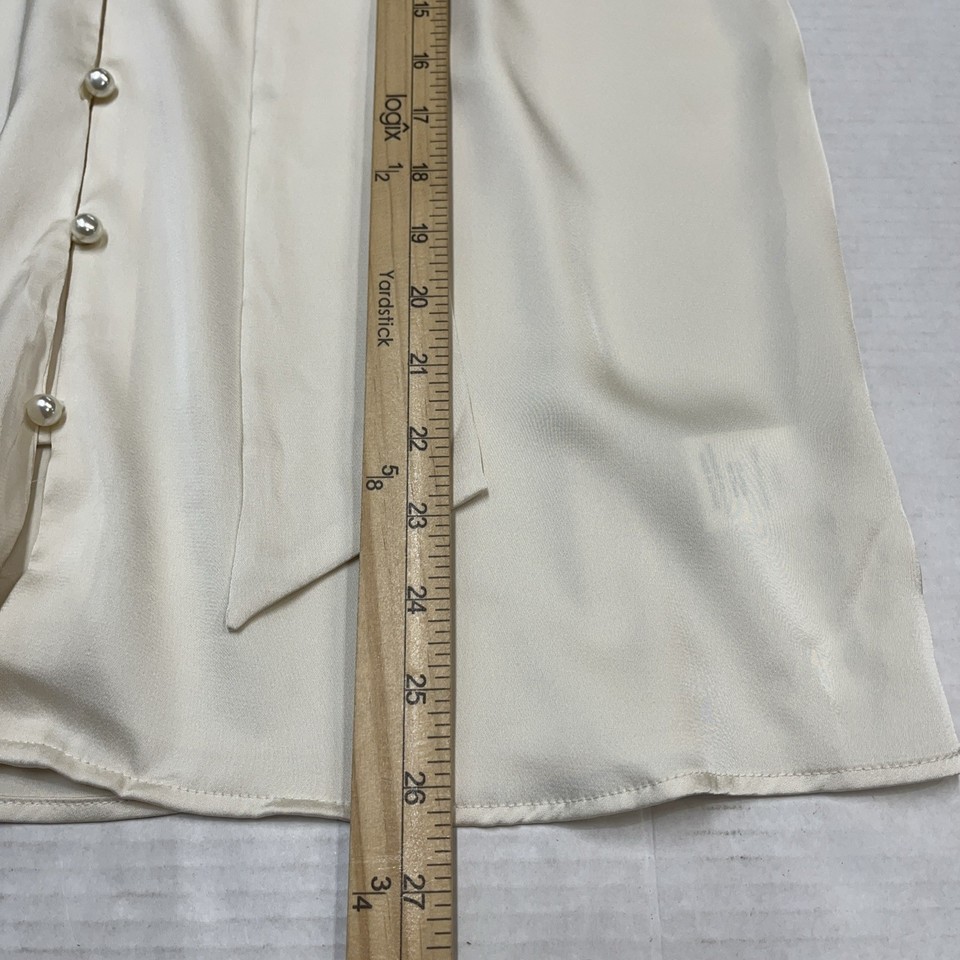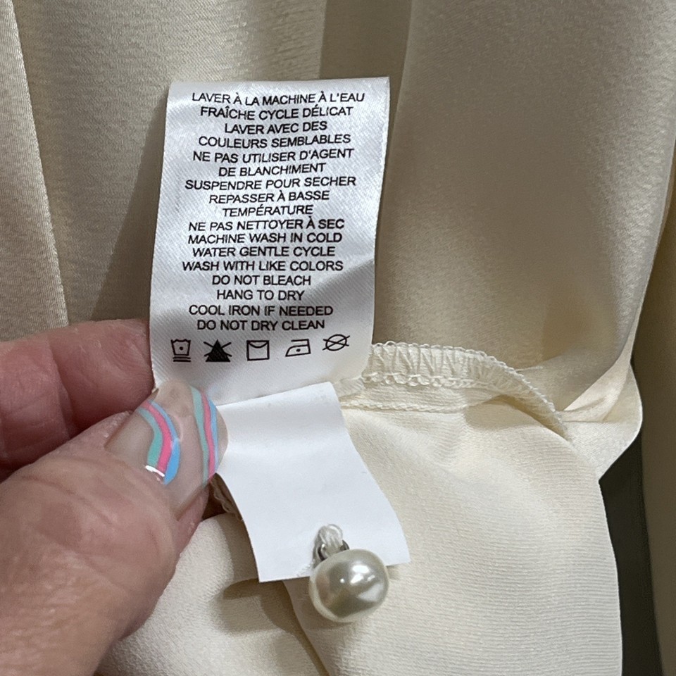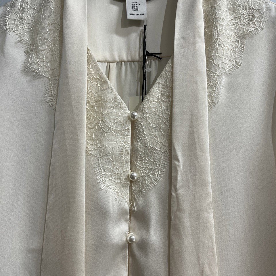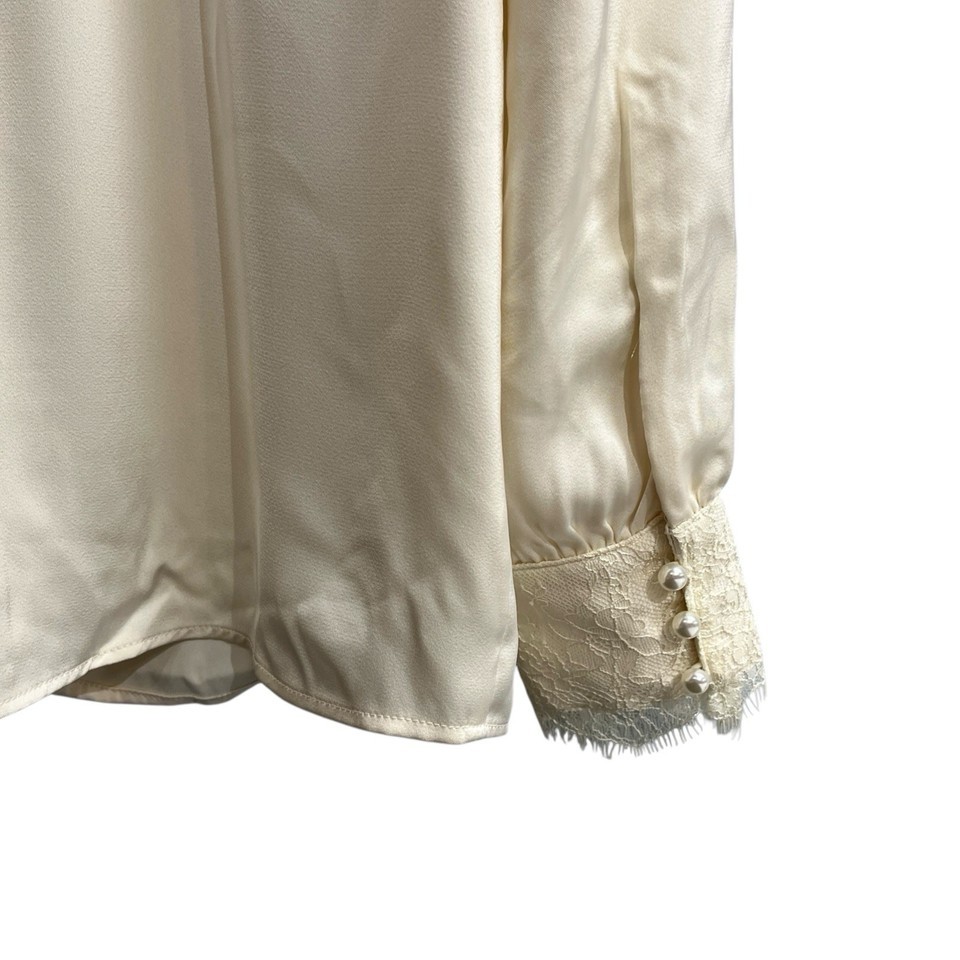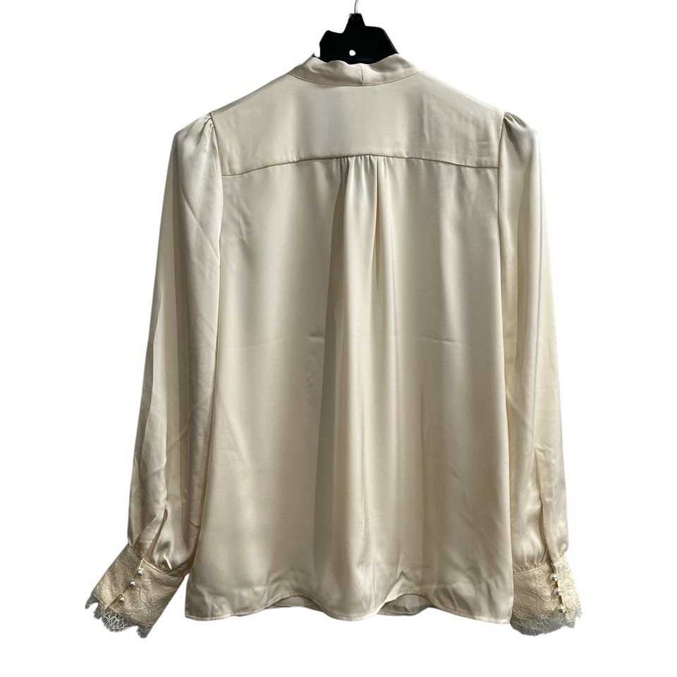 Rachel Zoe Top Womens M Ivory Satin Lace Trim Pearl Button Down Blouse Feminine