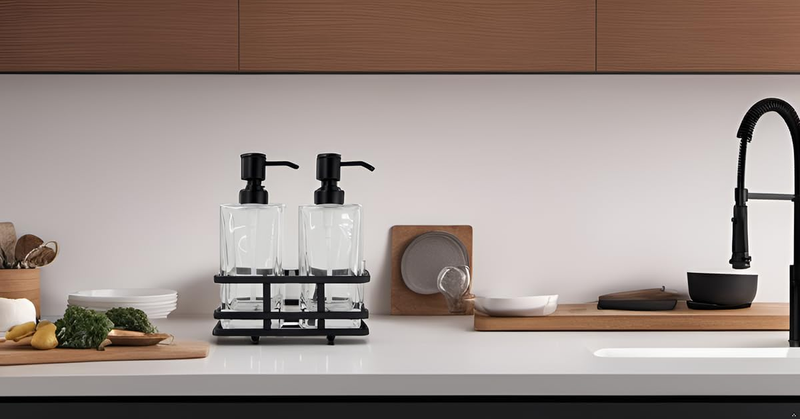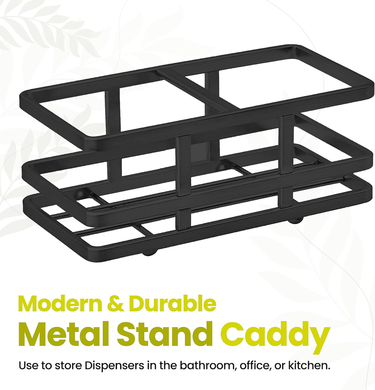 Includes 2 dispensers with easy opening removable pump head and 1 metal caddy to keep and store Soap dispensers neat and tidy around your countertops. Can be used to store other kitchen or items when holder not in use.