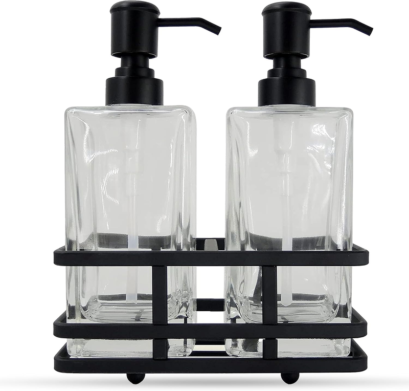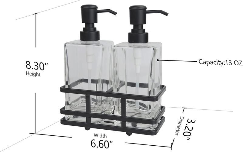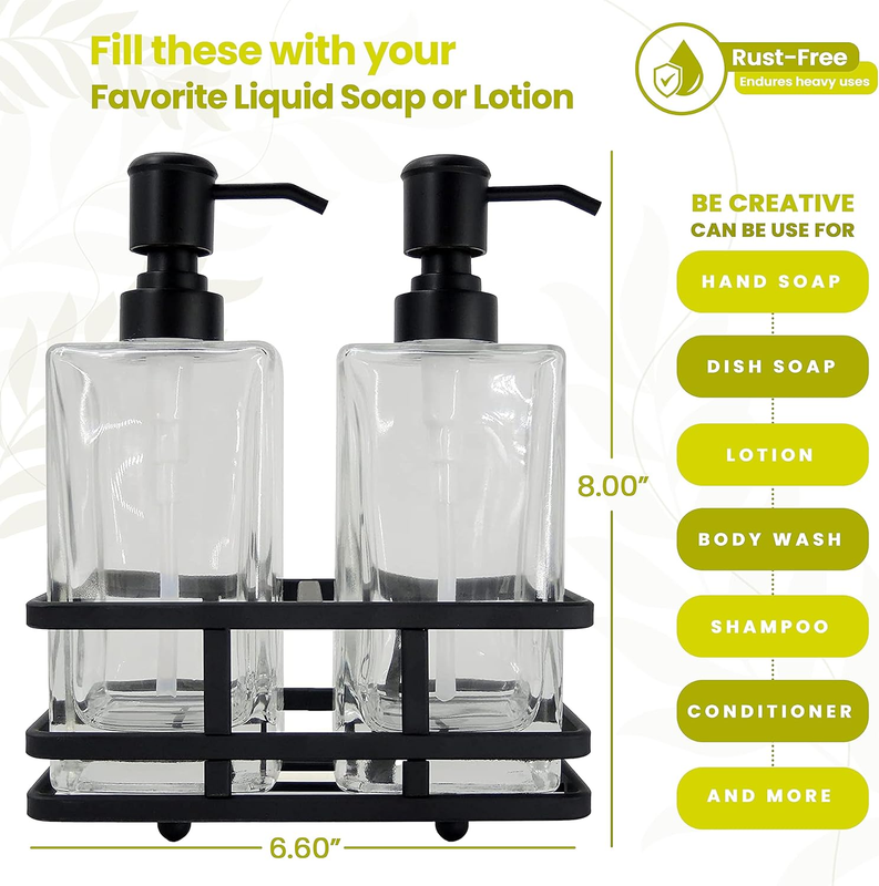 High Quality Materials: Glass dispensers are made with high quality heavy weight compressed glass for durability and include a rust proof pump. Caddy holder is made with premium Iron Metal.