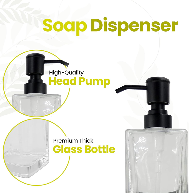 Add a Finished Look to the Kitchen or Bathroom. These reusable and refillable glass soap dispensers can be used for hand soap, dish soap, lotion, shampoos, conditioners, mouthwash, massage oils, aromatherapy essential oils, food and cooking ingredients, body wash, hand sanitizer, and more. Great for countertops, in the bathroom, office, or kitchen. A great accessory for your home, and makes a great gift.