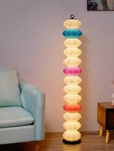 Product description: Transform your space with this striking modern gourd floor lamp featuring a vibrant color block design. Standing 55.1 inches tall with a 7.9-inch diameter, this statement piece delivers exceptional illumination through advanced LED technology. The lamp offers three selectable light modes and smooth dimming capabilities, allowing you to create the perfect ambiance for any occasion. Constructed from durable iron and lacquered plastic, this contemporary lighting fixture combines lightweight practicality with sophisticated style. The high color rendering index (CRI?97) ensures colors appear true-to-life and vibrant, making it ideal for living rooms, bedrooms, or hospitality settings. The innovative segmented shade design adds artistic flair to any interior, while the eye-friendly full spectrum lighting provides comfortable, natural illumination. Simply plug in and enjoy the instant transformation this sculptural lamp brings to your contemporary space.