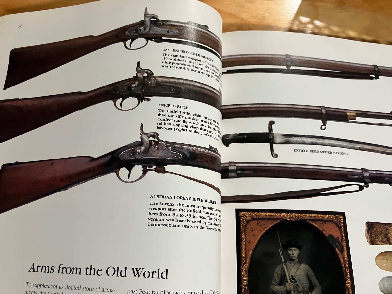 As the title would suggest, this work covers the uniforms, small arms, equipment used by various elements of the Confederate Army during the Civil War. The uniform section goes from regiment to regiment, from geographical area to geographical area. It covers ever thing from head gear to boots, including spurs, and all in between. Small arms, including rifles, pistols, knives, swords, etc. are covered in detail and their usage is well covered in a well written and detailed text.