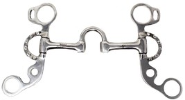 Challenger rust-free stainless steel Argentine studded short shank low port correction bit. The low port mouth is designed to provide relief to horse's tongue while adding pressure to the bars, and the swept back short shank does decrease reaction time from your hand to the horse's mouth making this a mild bit. Features a 5" mouth with 2-3/4" shanks.