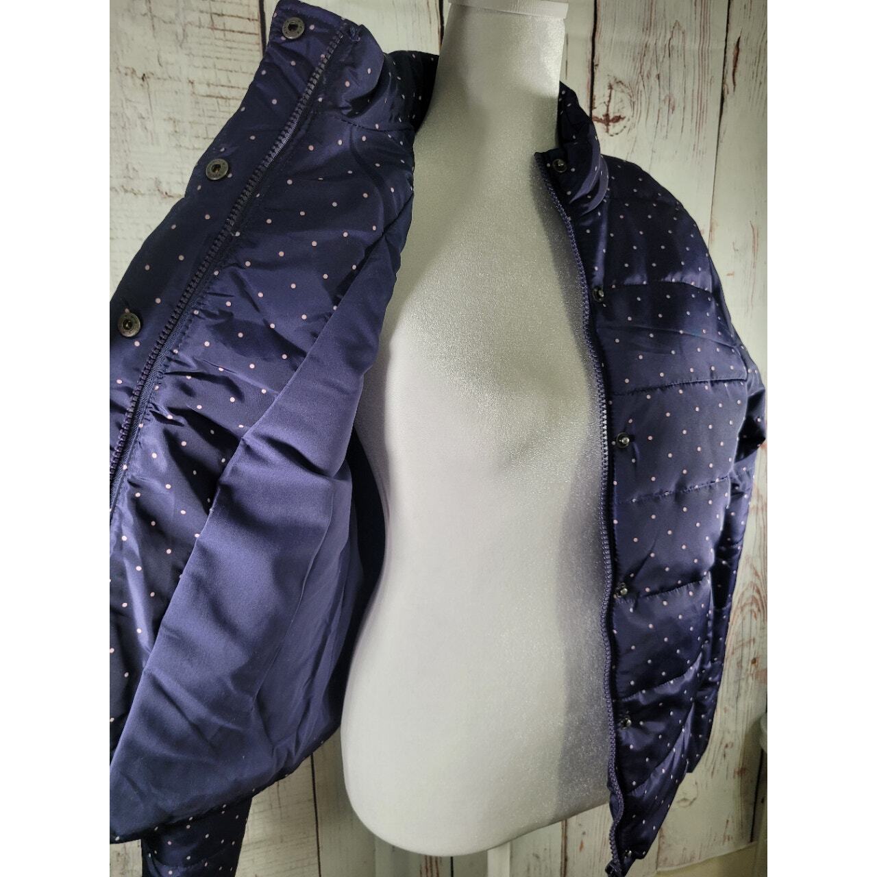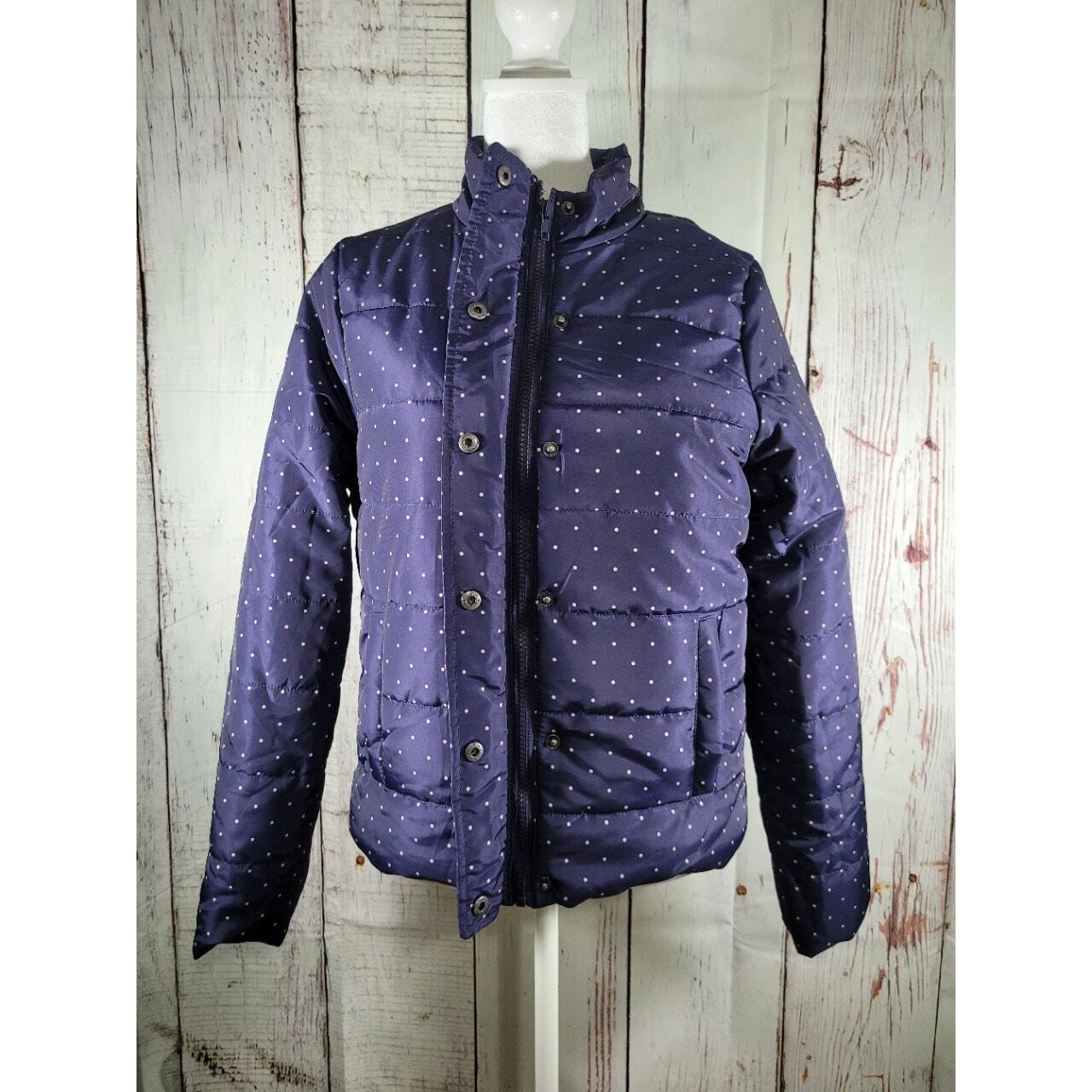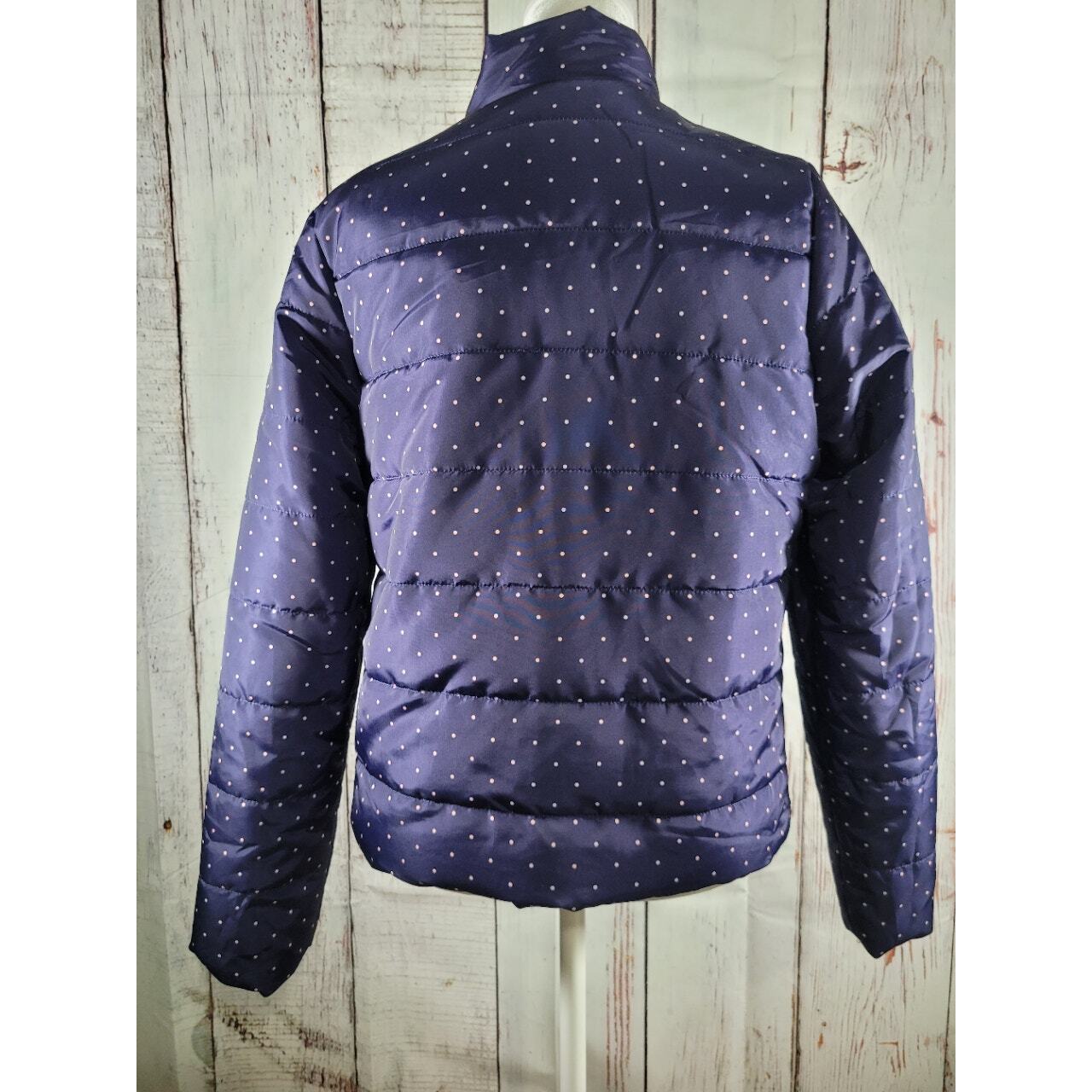 Copper Key Womens Polka Dot Puffer Jacket Sz XS Blue Pink