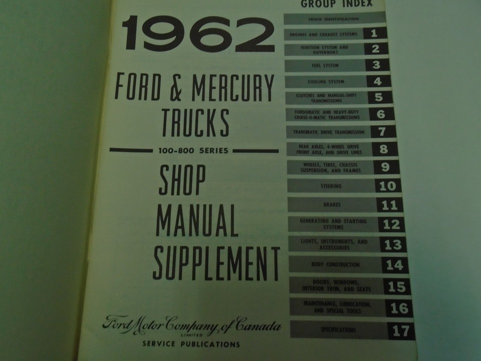1962 Ford Mercury Trucks 100 800 Series Service Shop Repair Manual Supplement 62