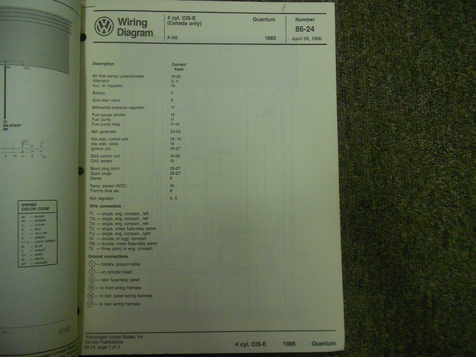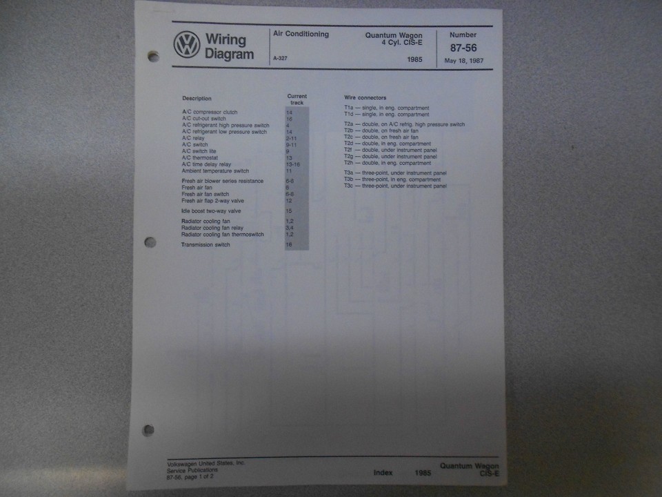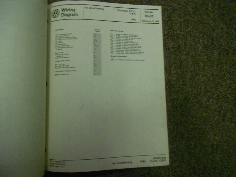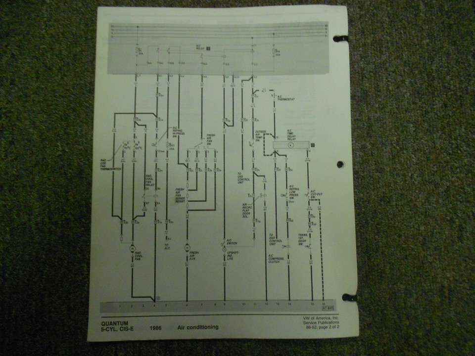 1986 VW Quantum 4 5 Cylinder Auto Trans AC Wiring Diagram Service Manual OEM 86