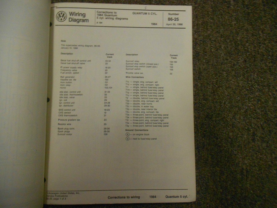 Quantum- 5 Cylinder Corrections to 1984 Quantum 5 Cyl. Wiring Diagrams