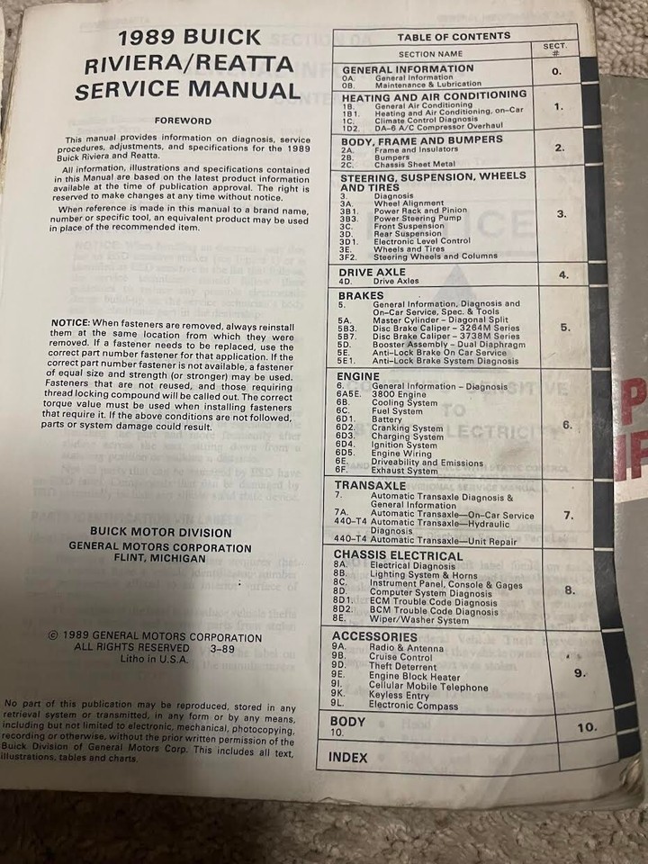 This manual is published by GM, and are the same manuals the Buick Mechanics/Technicians use at the dealership when servicing your REATTA/RIVIERA