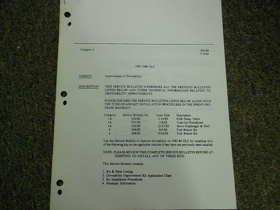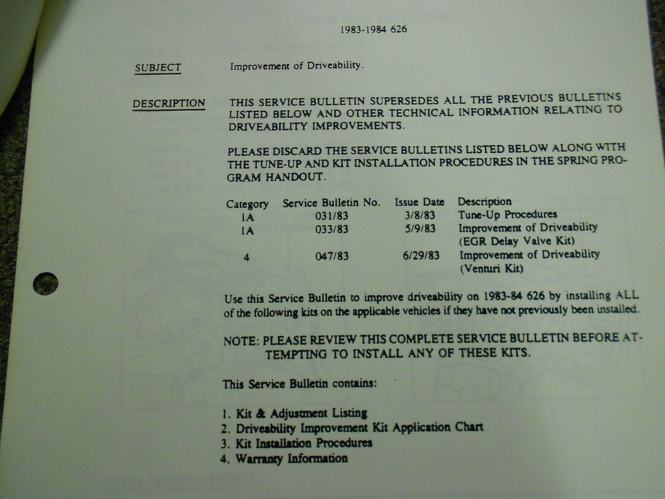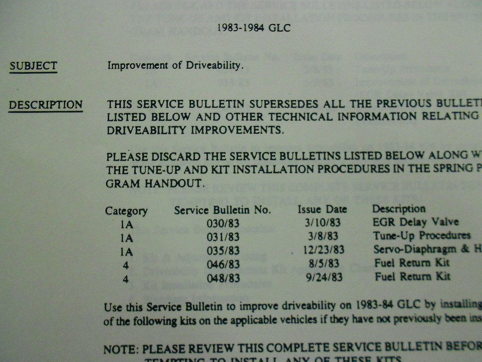 1983-1984 MAZDA GLC SERVICE BULLETIN MANUAL