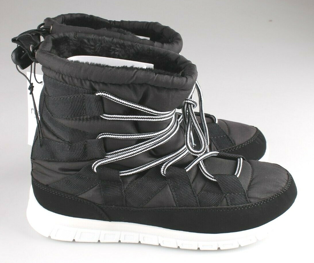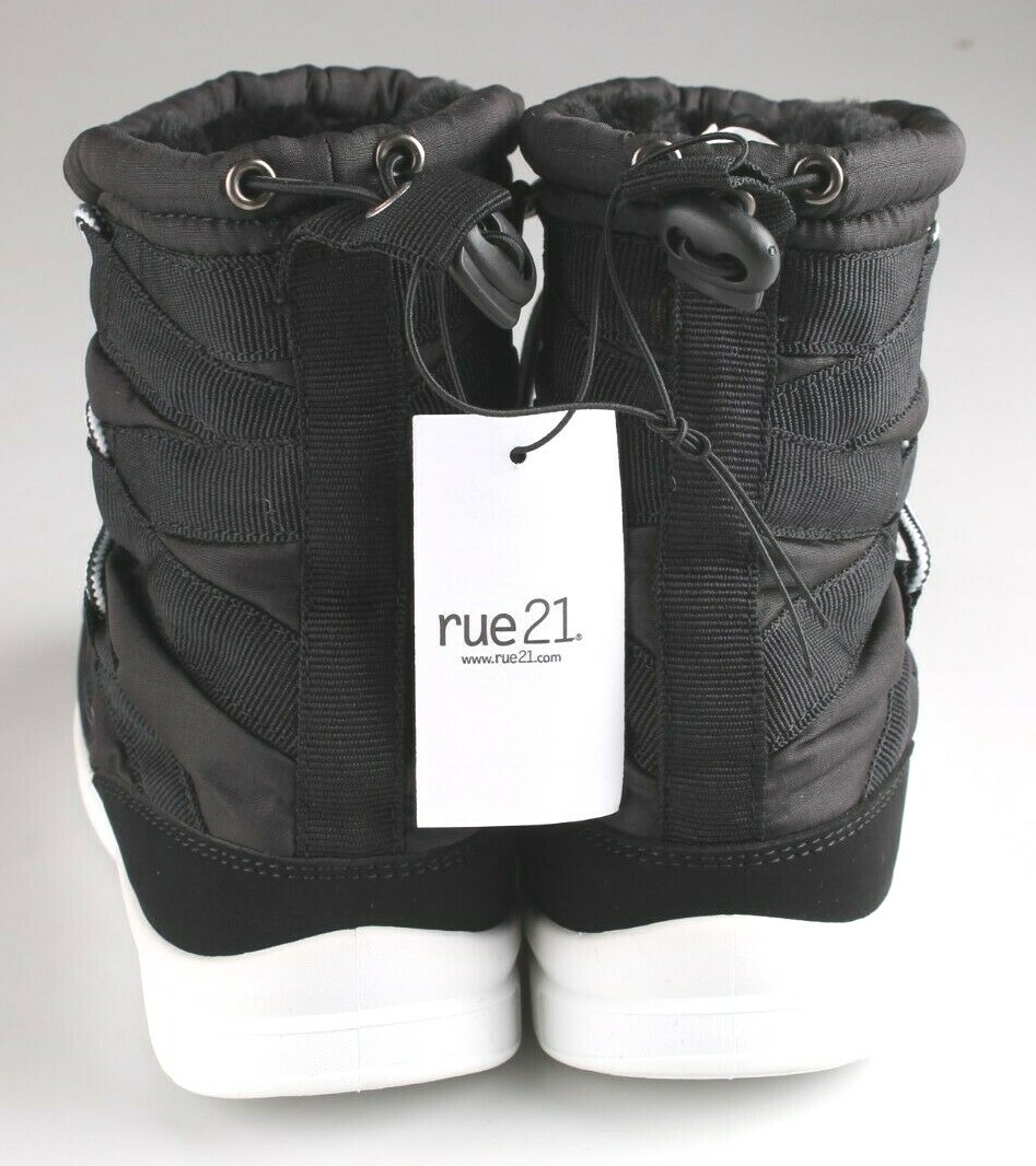 Dies gilt für ein brandneues Paar Rue 21 Damen Black Schnürung innerer Faux -Fell -Sneaker -Winter-/Schneestiefel
