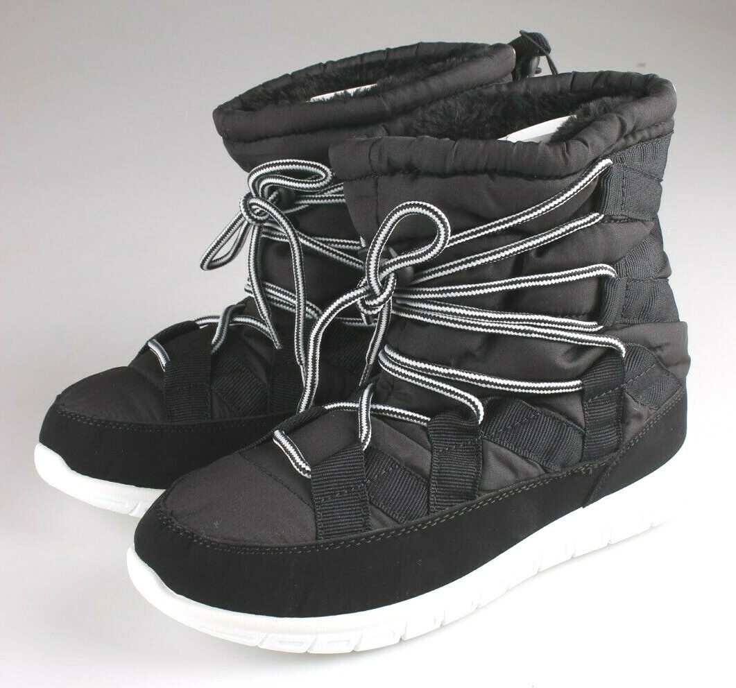 Dies gilt für ein brandneues Paar Rue 21 Damen Black Schnürung innerer Faux -Fell -Sneaker -Winter-/Schneestiefel Große L 8/9 Obere - Mann gemacht Materialien Inneres Fellfell Schnüren mit fester Befestigung Anziehungsbefestigter auf dem Rücken im Rücken zum Schneeschutz Harte Gummi -Außensohle Versand schnell am 2. Tag ausgestrahlt zu den Continental USA Street -Adressen, einschließlich Hawaii und Alaska.