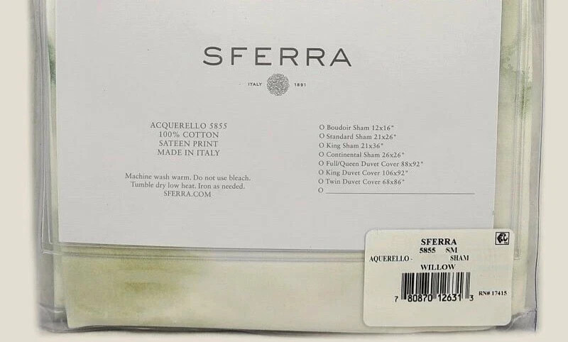 Sferra Acquerello Green Euro Shams (2) White Abstract Sateen Print Italy NEW