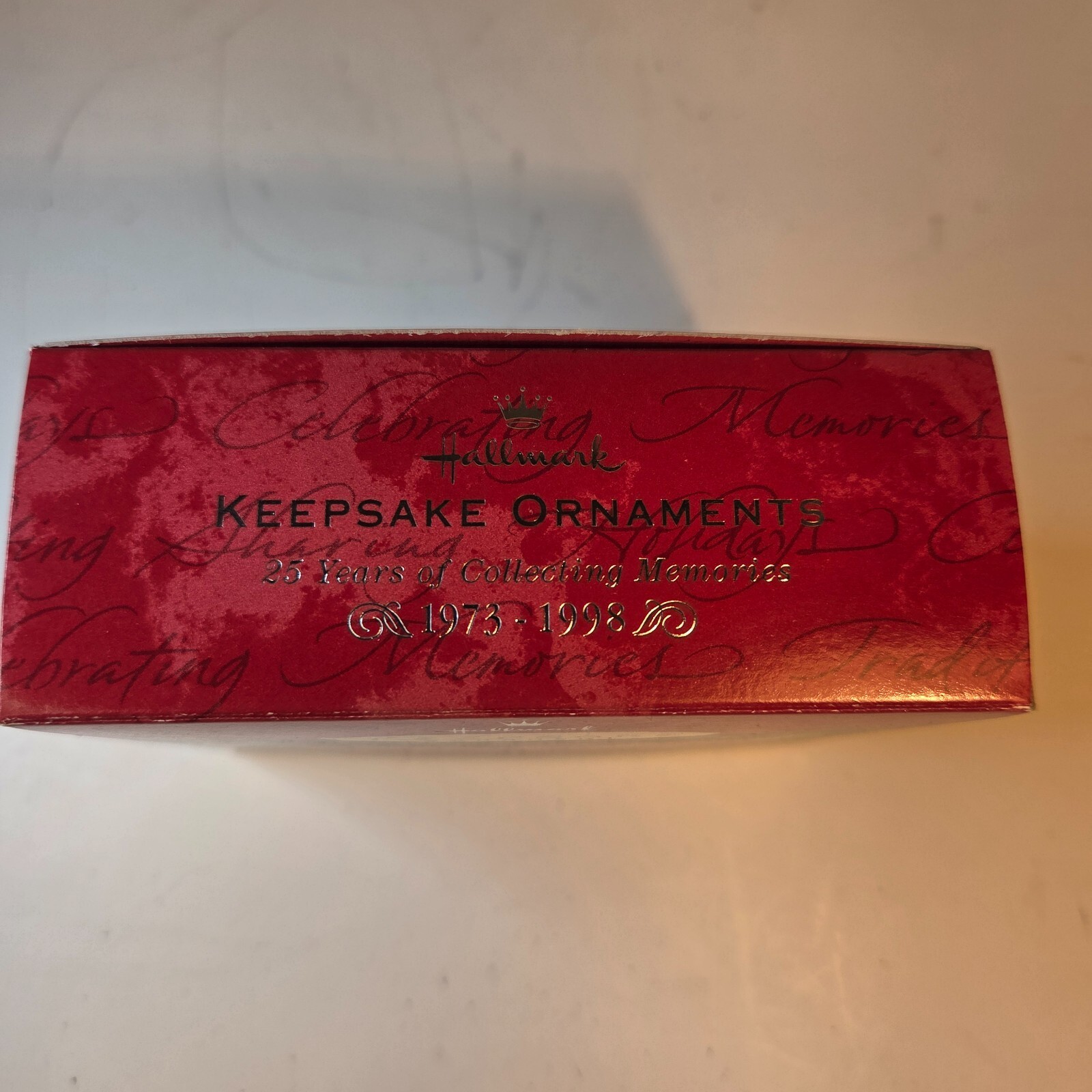 The Hallmark Keepsake Ornament is a small red ornament featuring a 1970 Plymouth Hemi 'Cuda sports car design. Manufactured in 1998, this vintage ornament is part of the Christmas theme collection. It is a classic hanging ornament that would make a great addition to any holiday decor, especially for car enthusiasts or collectors of vintage ornaments. Made in China, this ornament weighs approximately 5 oz and is a charming piece for Christmas decorations.