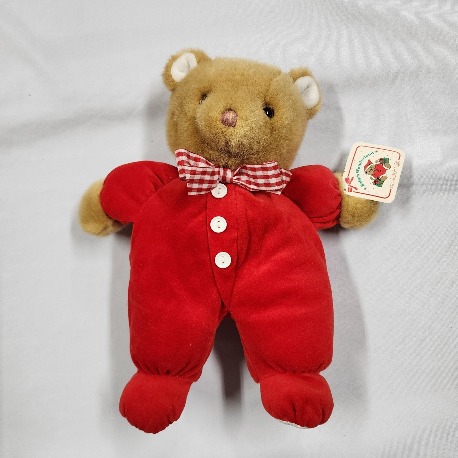 Keywords: Eden, Baby's Wonderland, Teddy Bear, Plush, Stuffed Animal, Red Pajamas, Christmas Gift, Collectible, Vintage Toy, Holiday, Baby Toy, Nostalgic, Retro