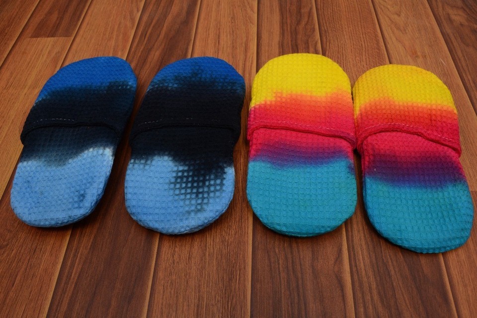 Waffle Weave Toe Persolized Tye Dye Beach Colors Slippers | Comfortable Fit | Closed White Slippers Pack Of 4 pairs Waffle Weave Toe Slippers | Comfortable Fit
