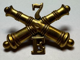 Stamped brass, screw post fastener, reverse has two small needle points to keep the device from rotating. The army formed the 7th Artillery Regiment in 1899. Between then and 1901 the seven artillery regiments had 14 batteries.