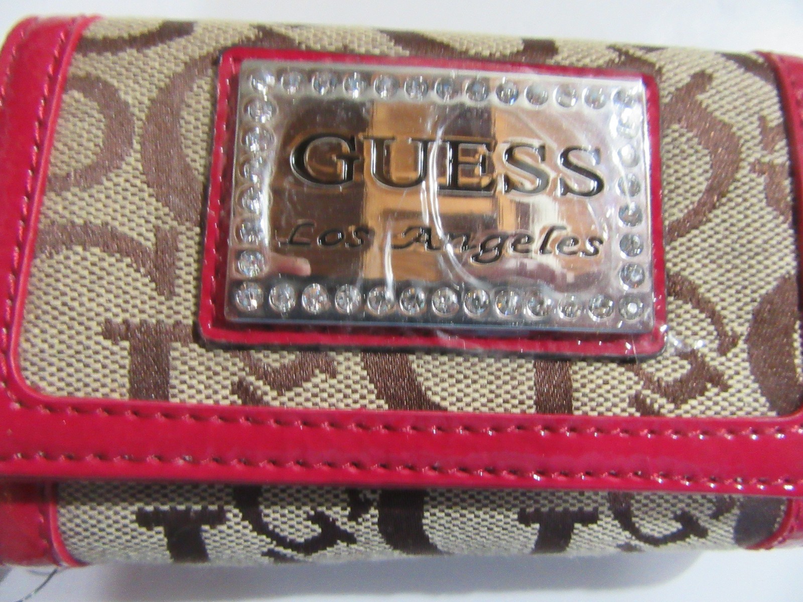 Guess Womens Taluca Vintage Small Signature Wristlet Wallet Brown / Pink
