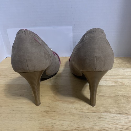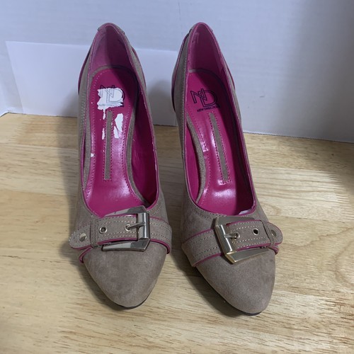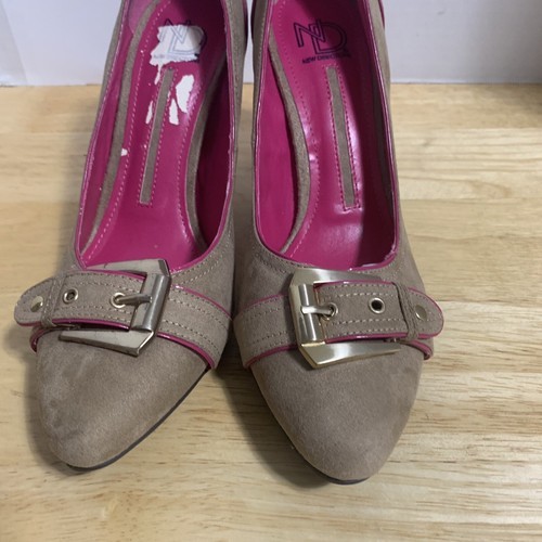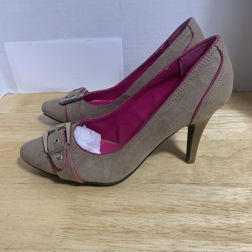 New Directions DIEGO (Women's 9M) Pumps Faux Vegan Suede Heels Beige Pink Buckle