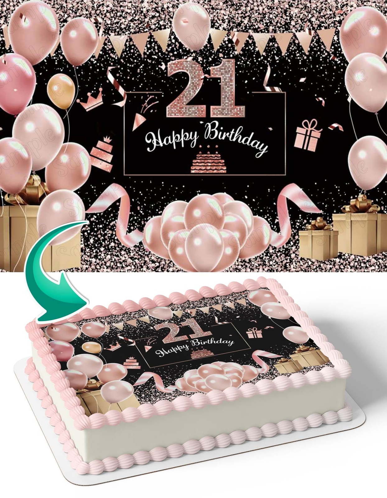 Pink Gold Gift Box Balloons Birthday Cake and similar items