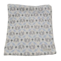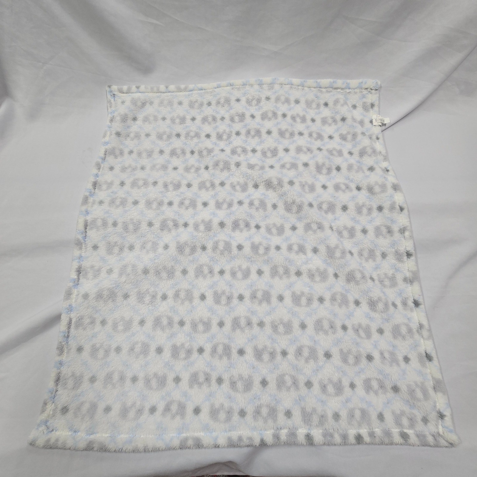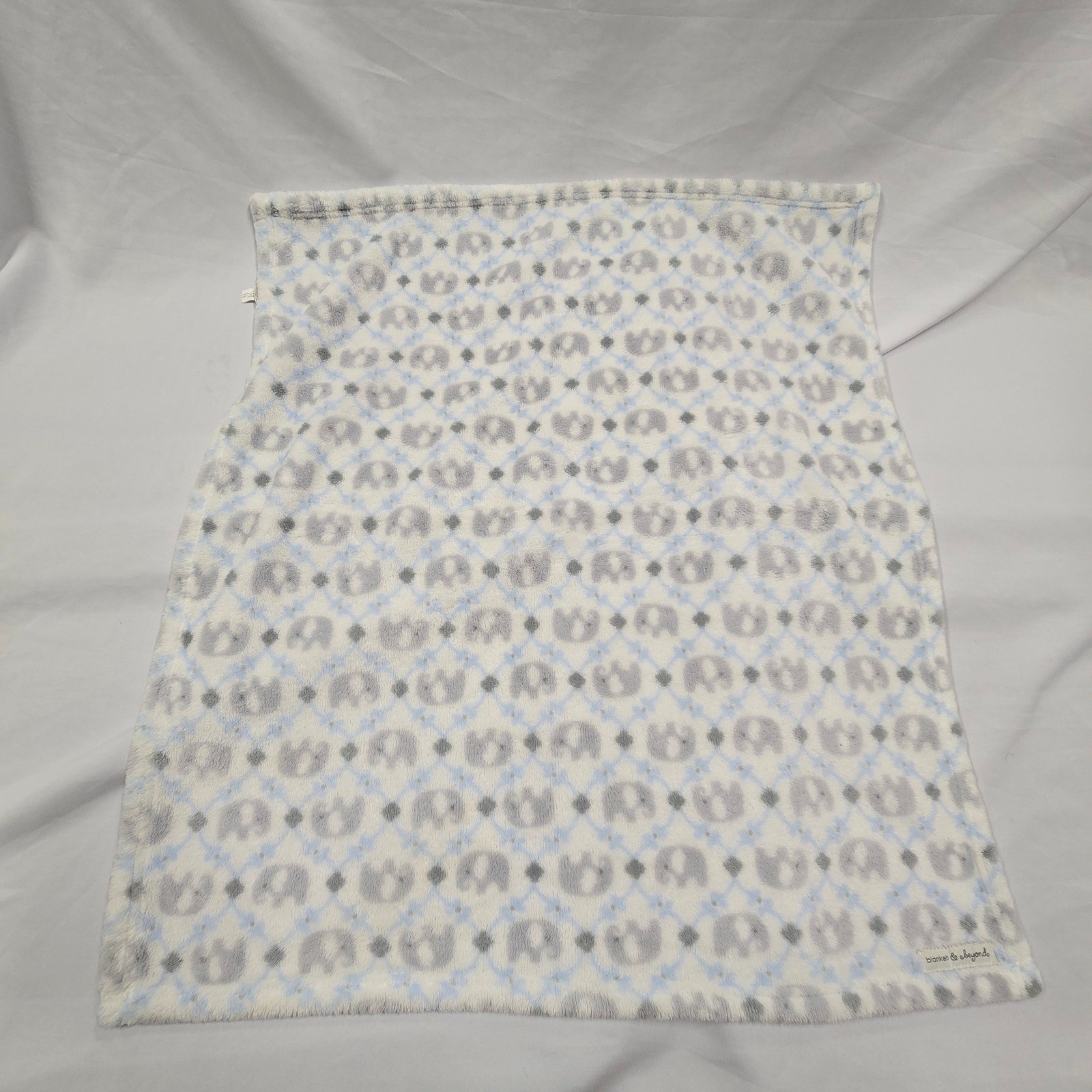 Blankets & Beyond Baby Blanket Plush Elephant Print White Blue Gray Soft