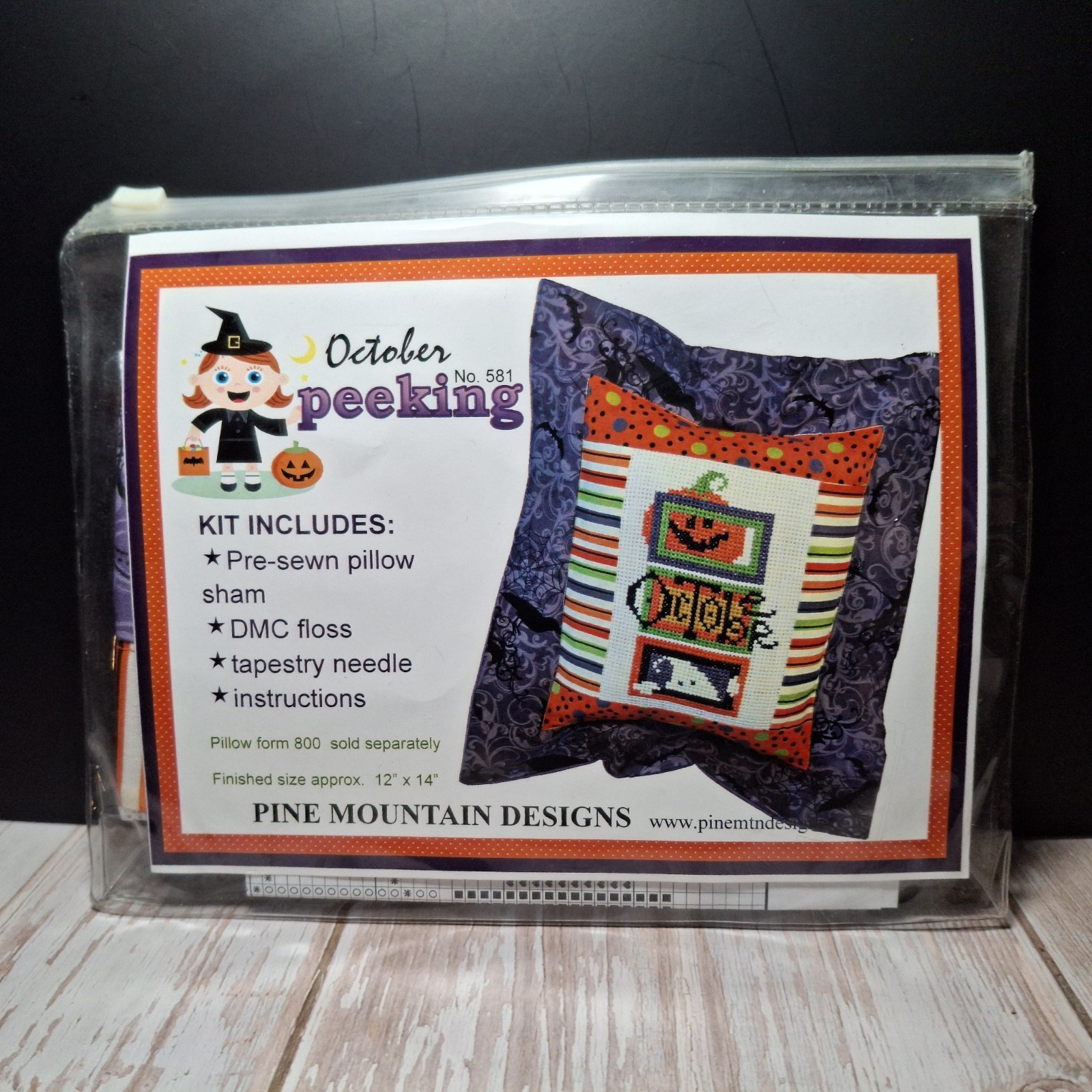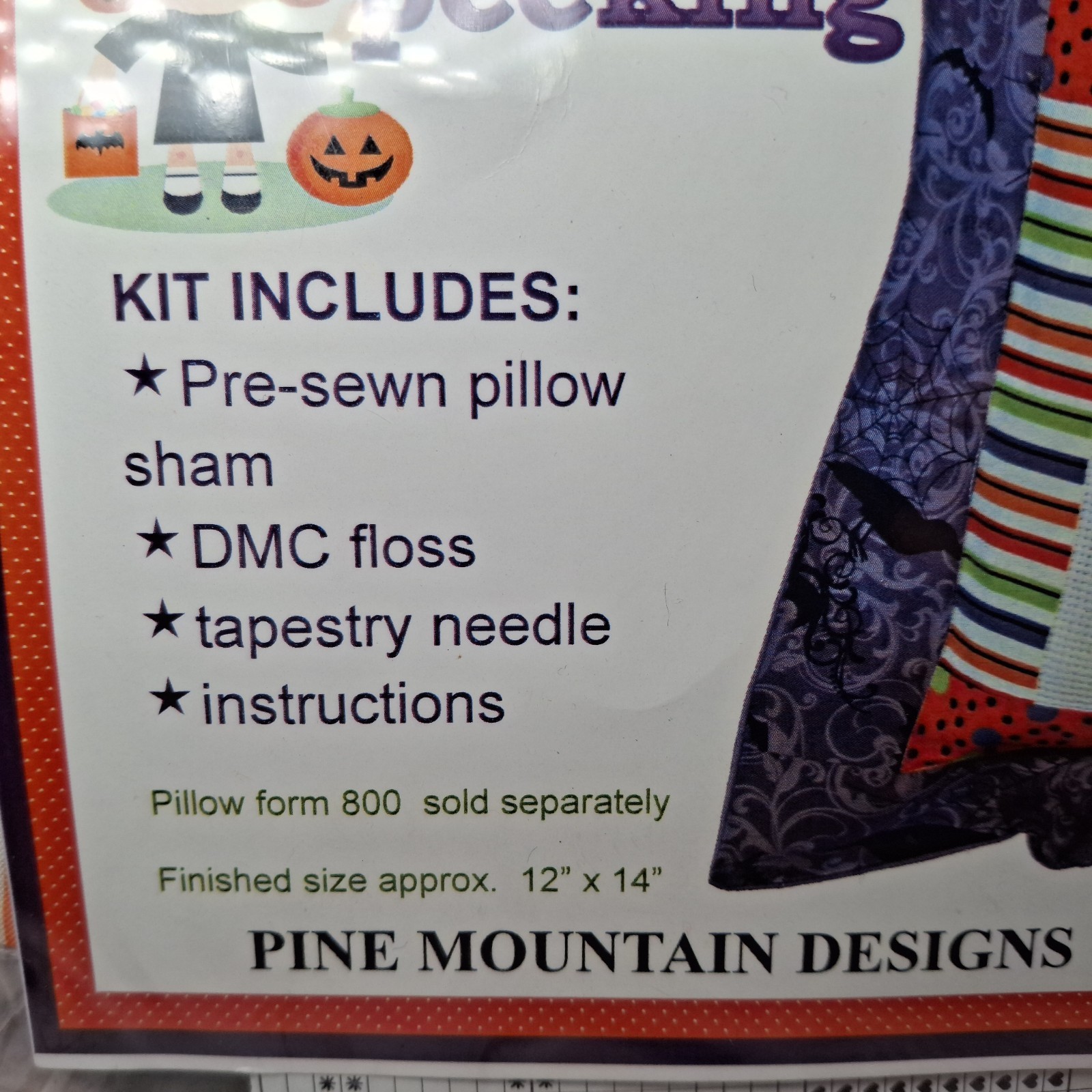 Pine Mountain Cross Stitch Kit OCTOBER IS PEEKING #581 12"14" Pillow Sham Halloween - NEW