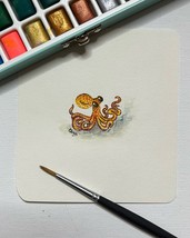 Original Hand painted Miniature watercolor painting of a Baby Octopus