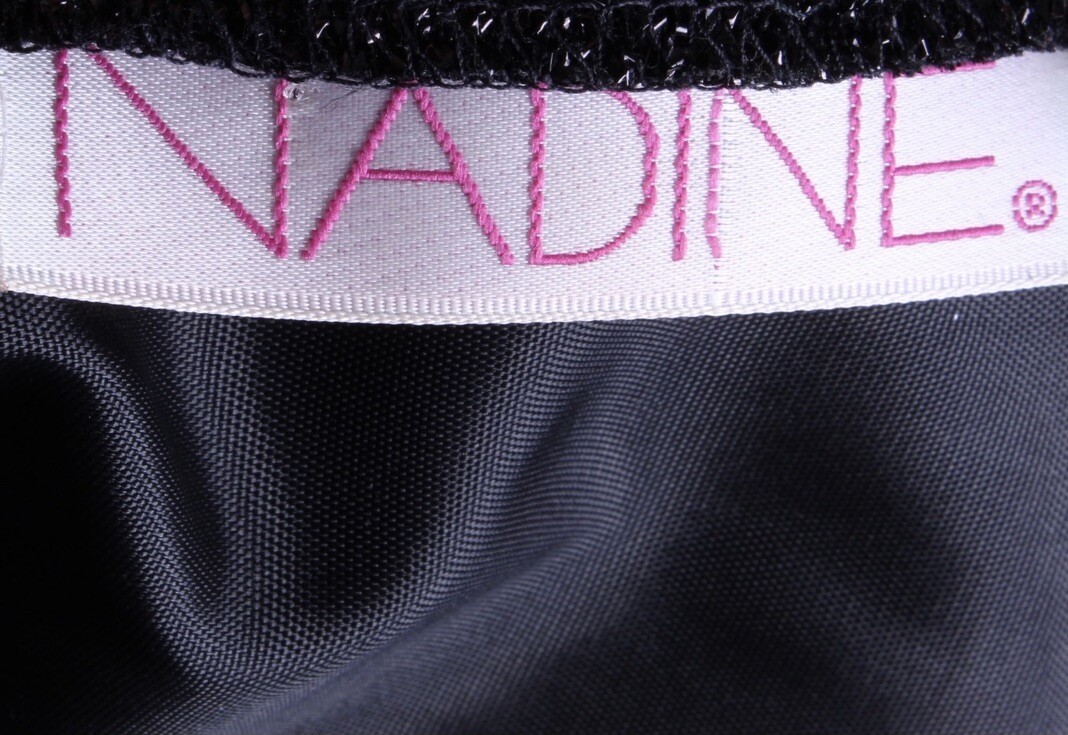 Provenance Note: Nadine was a popular mid-tier eveningwear brand in the 1980s, producing glittering cocktail dresses, prom gowns, and party minis. Their feather-trimmed lurex styles epitomize the excess and glamour of the decade, making them fun and collectible today for retro party looks and 80s costuming.