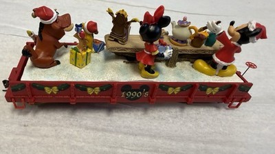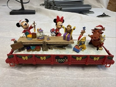 The Hawthorne Village Christmas Disney 1990's Gondola Mickey Friends is a pre-built plastic model train car in 1:87 scale, featuring a multicolor design with a Christmas theme. Manufactured in China by Bachmann during the 1990s, this Disney franchise collectible is part of a two-rail system and is ready to go for assembly. This vintage piece is a perfect addition to any model railroad collection, especially for fans of Disney and Christmas memorabilia.