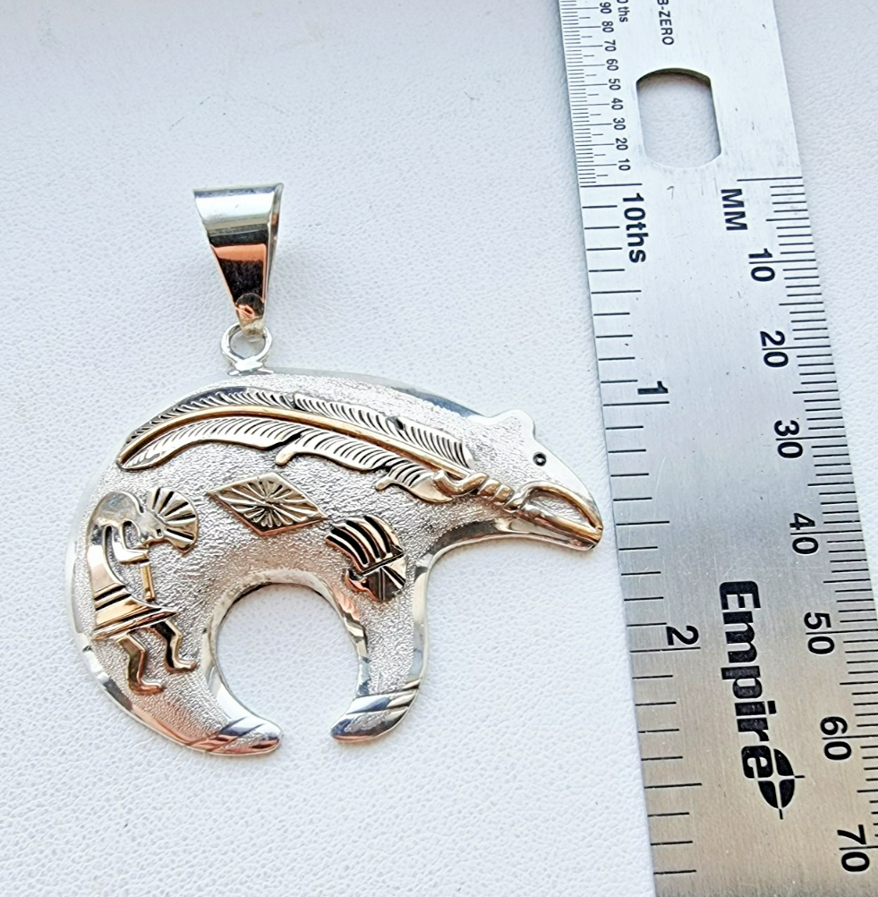 MARK YAZZIE NATIVE AMERICAN 925 STERLING SILVER 12K GOLD BEAR PENDANT
