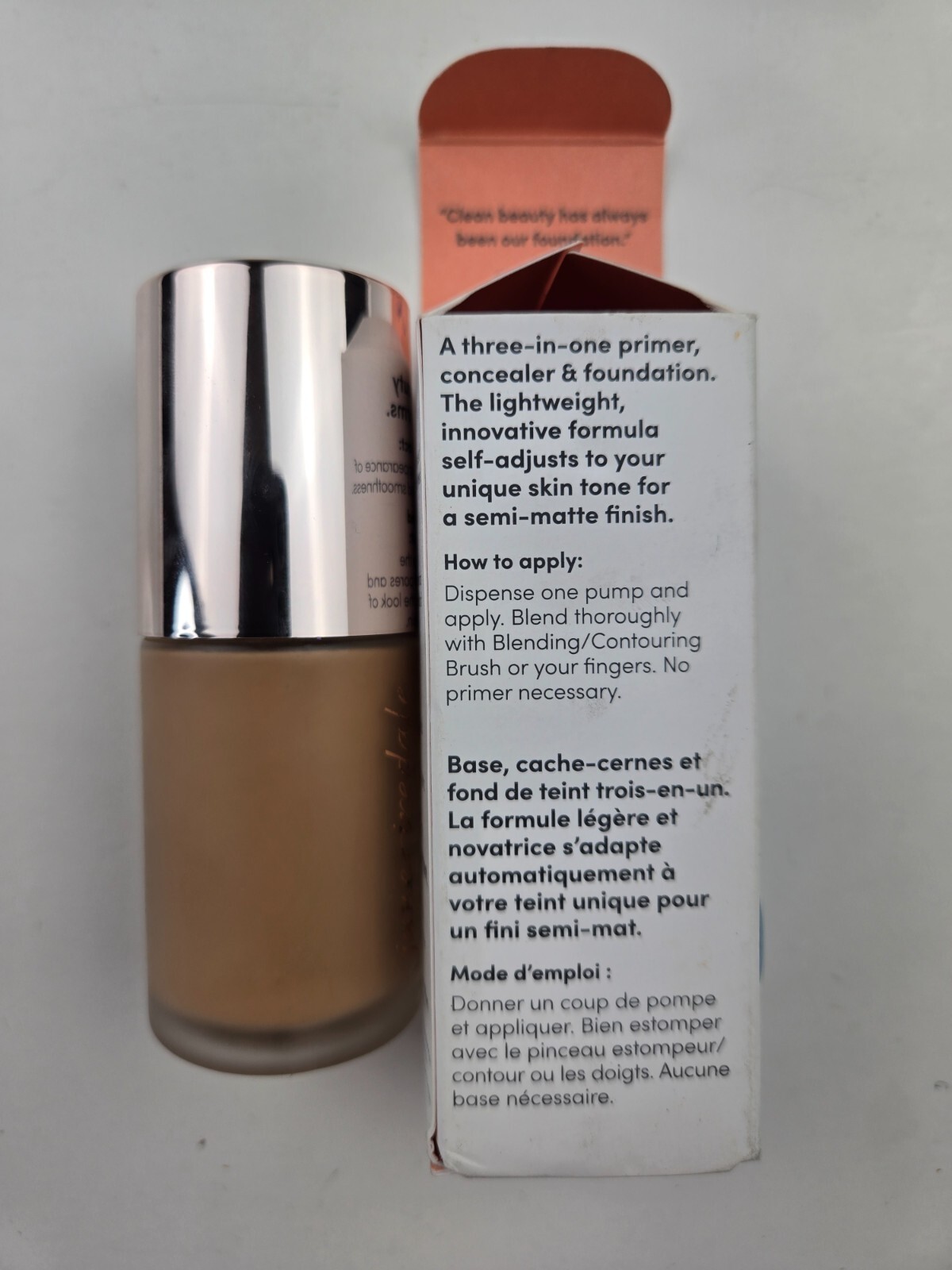 A clean, weightless, multitasking 3-in-1 liquid foundation with buildable, stay-put coverage and a natural-looking semi-matte finish. Formulated with skin-nourishing, plant-based ingredients. 100% vegan and always cruelty-free.