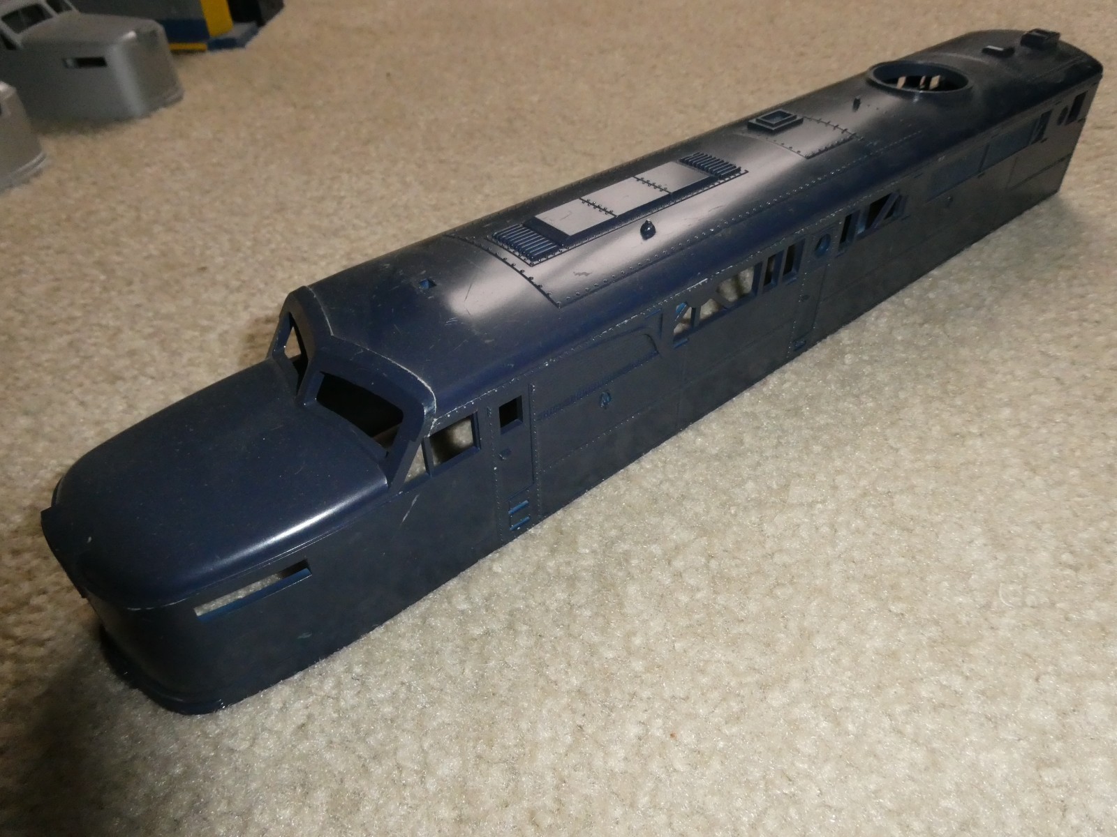 MTH O Scale Sample Undecorated Navy Blue Diesel Locomotive Body Shell 16" Long