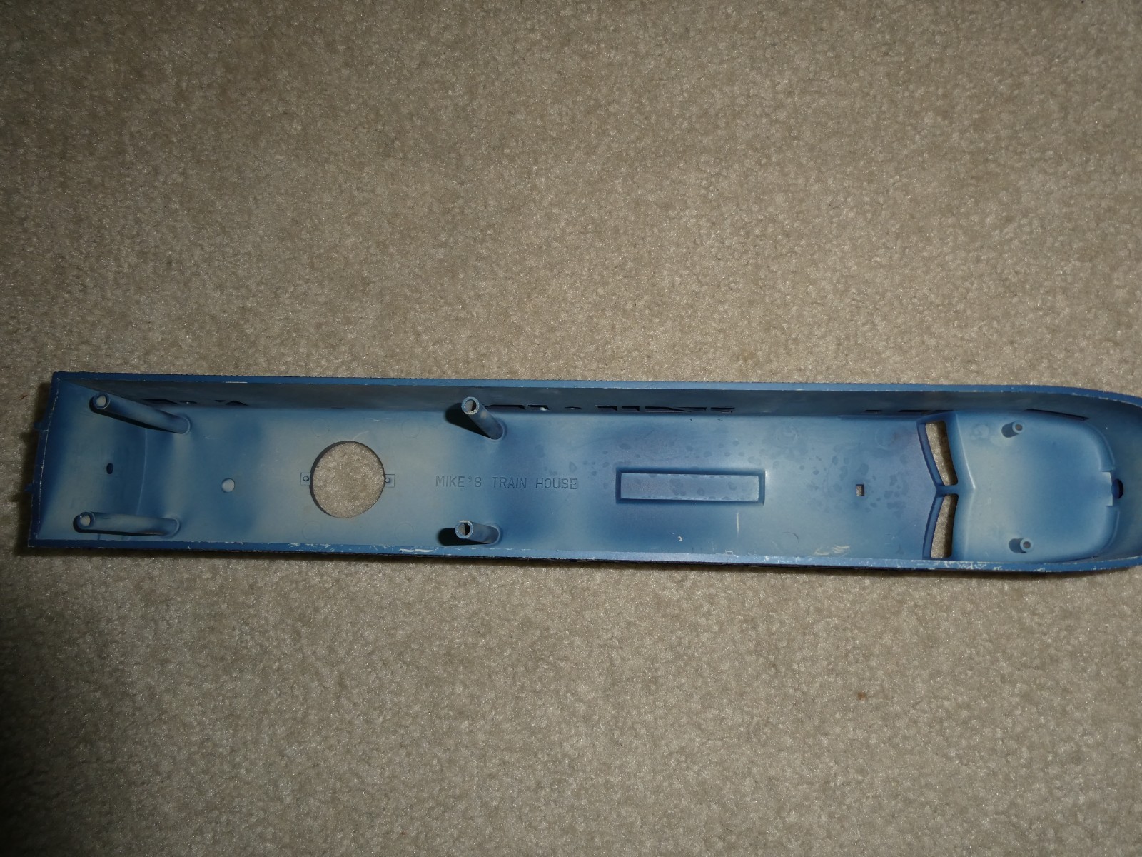 You are bidding on a nice looking, MTH O Gauge, unused sample locomotive body or shell, undecorated navy blue, in the pictures. 16 inches long. Unused factory sample with some writing on the inside, light scratches, only one side has a gray stripe, no trim and comes as shown. Zoom in for details.
