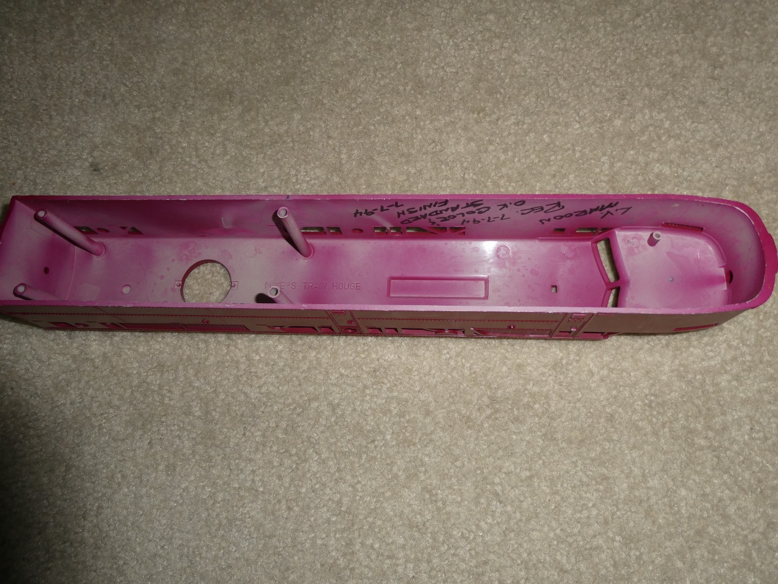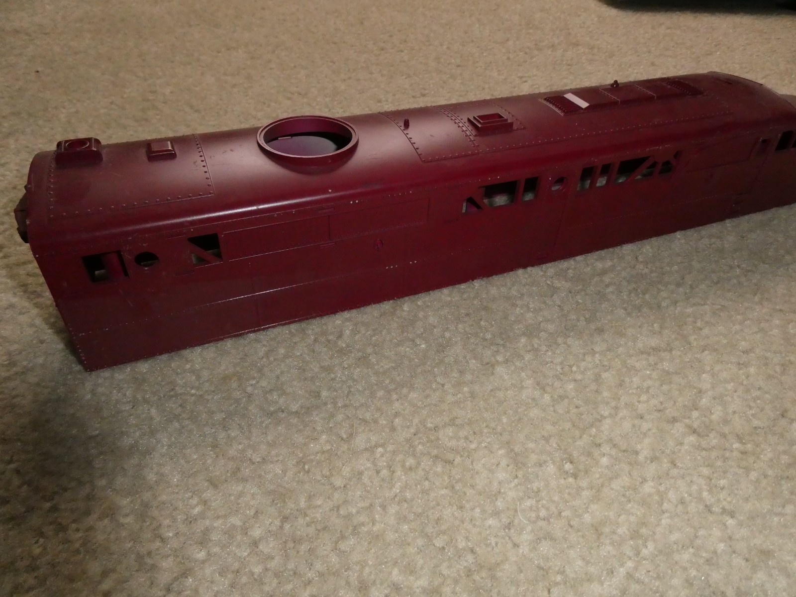 You are bidding on a nice looking, MTH O Gauge, unused sample locomotive body or shell, undecorated maroon, in the pictures. 16 inches long. Unused factory sample with some writing on the inside, light scratches, no trim and comes as shown. Zoom in for details.