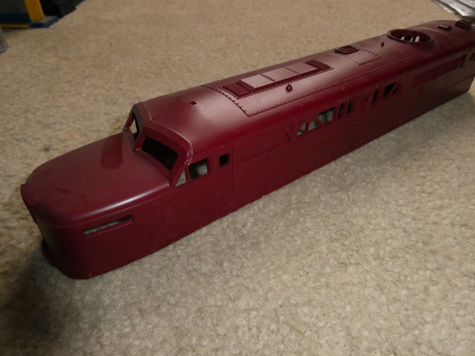 MTH O Scale Sample Undecorated Maroon Diesel Locomotive Body Shell 16" Long