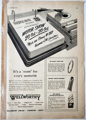 1954 Wellworthy Earls Court Motor Show Advertisement Autocar Automobilia DWPP11