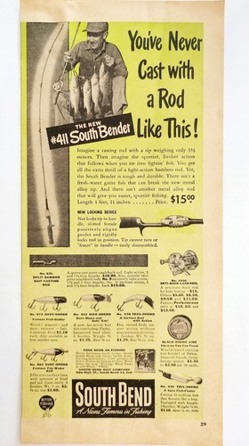 South Bend #411 Fishing Pole Casting Rod 1947 Advertisement Fishing DWNN27